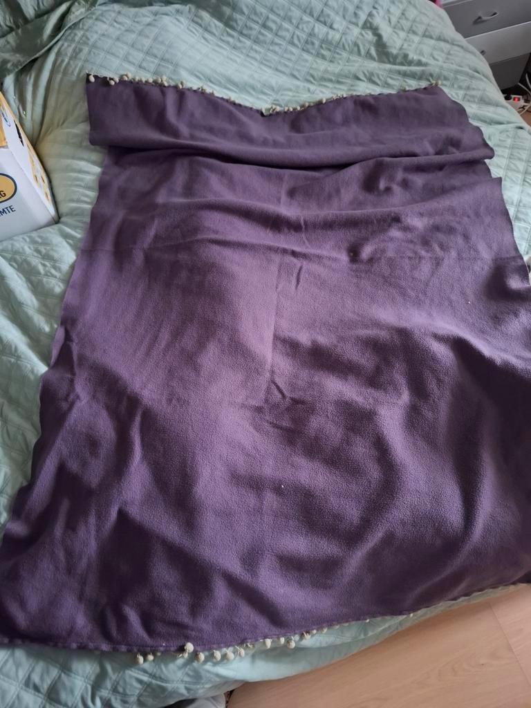 Paarse plaid/ paarse deken. Zit wat lijmresten op