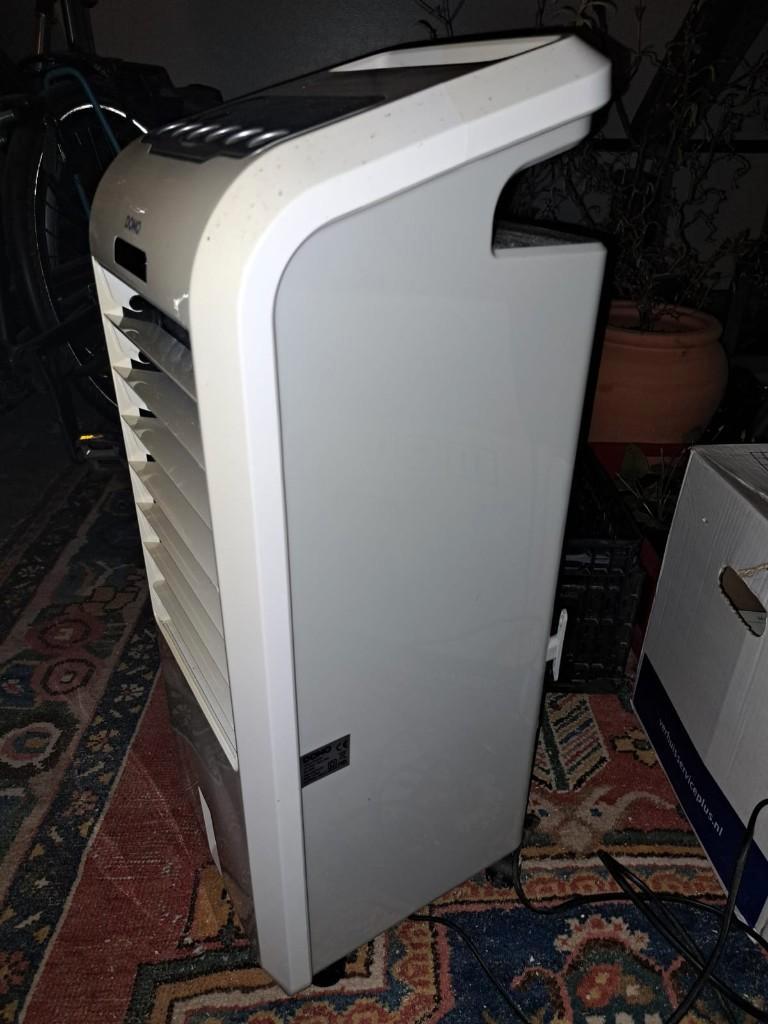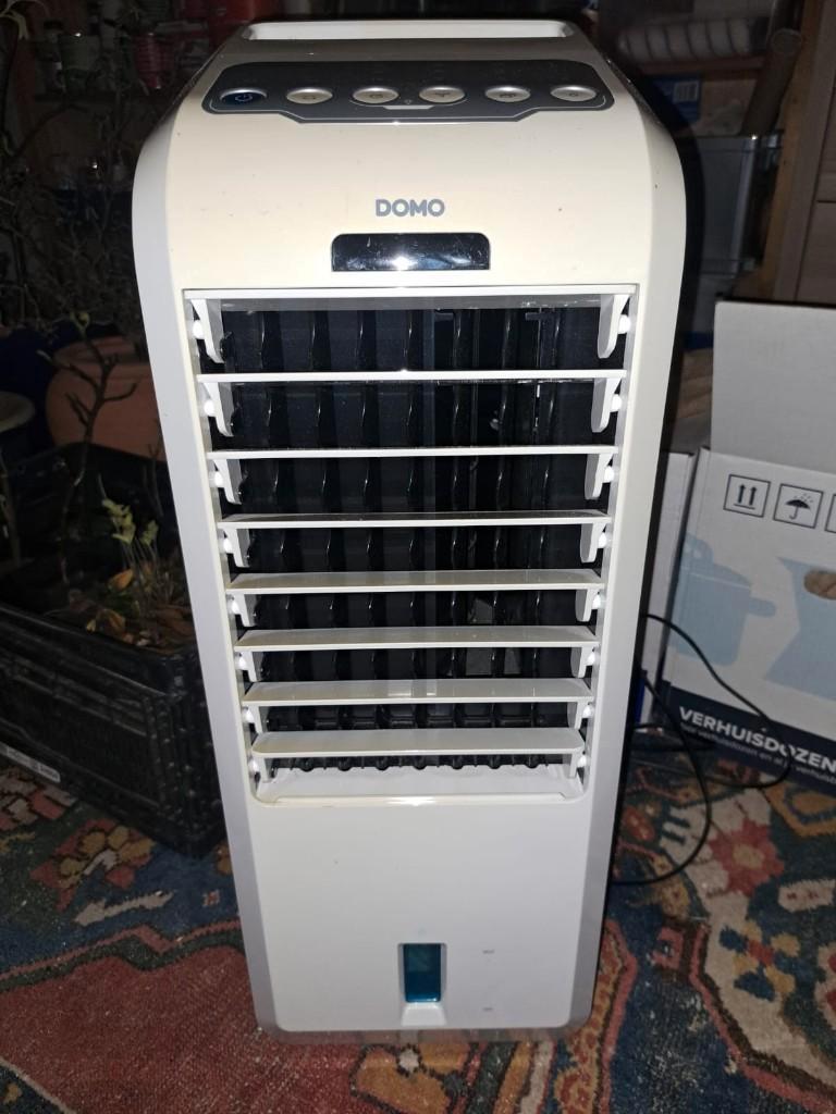 Domo do153a multifunctionele luchtkoeler, ventilator en luchtbevochtiger. Nieuwprijs €117,99. Koelt de lucht door deze langs een koelelement met water te leiden. Heeft meerdere standen (normaal,