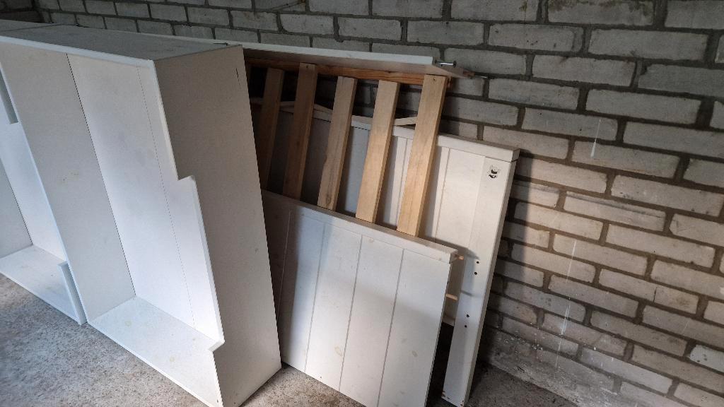 Gebruikt éénpersoonsbed met handige opberglades, met dekbed