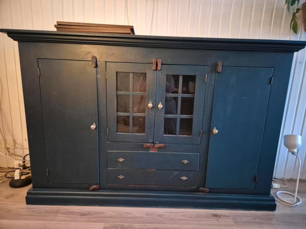 Gratis af te halen antieke, houten, zware kast. Afm 200cm breed x 47cm diep en 126 cm hoog. Oud hollands blauw, mag nog een likje verf extra. Laden wat stroef maar verder helemaal in orde. Moet uiterl