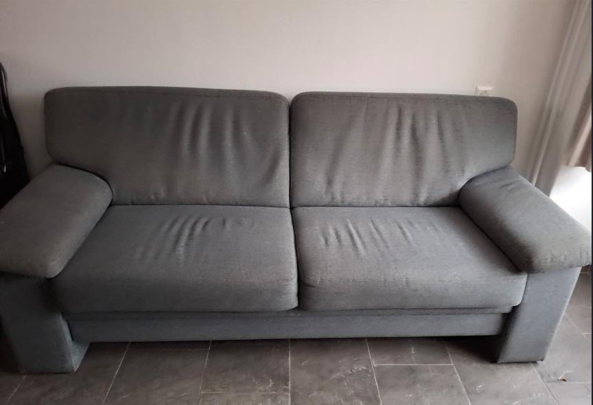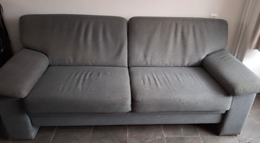 Gratis af te halen zit-bank 1.90M. Breed (2,5 zits), diepte 84 cm,stof, kleur grijs.
