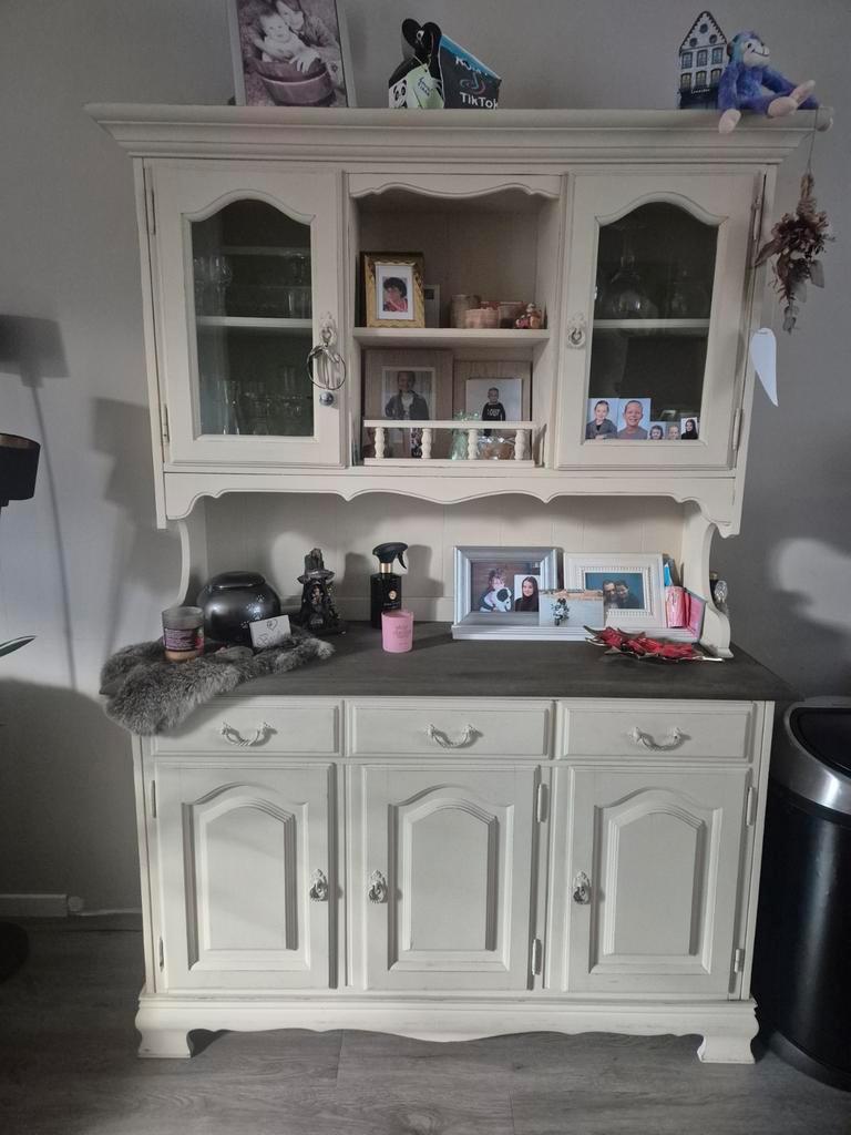 Deze buffetkast biedt veel opbergruimte en is perfect voor het opbergen van servies, boeken of andere spullen. De kast heeft zowel deuren als lades. De stijl is klassiek, maar past ook goed in een lan