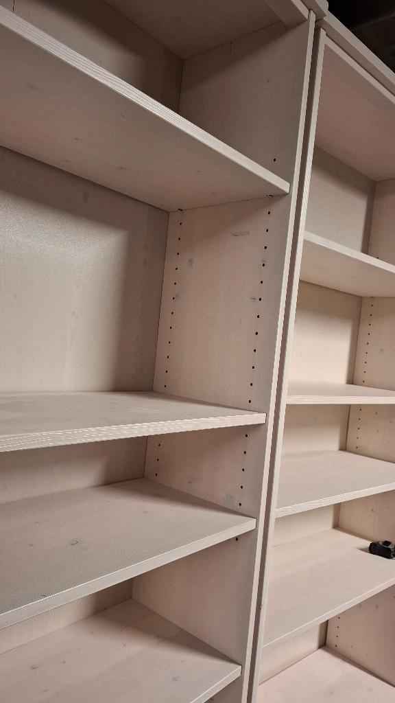 3 boekenkasten, gratis afhalen. Hout, wit (whitewash) gebruikt. Hoogte ca. 210 Cm breedte ca. 80 Cm diepte ca. 31 Cm