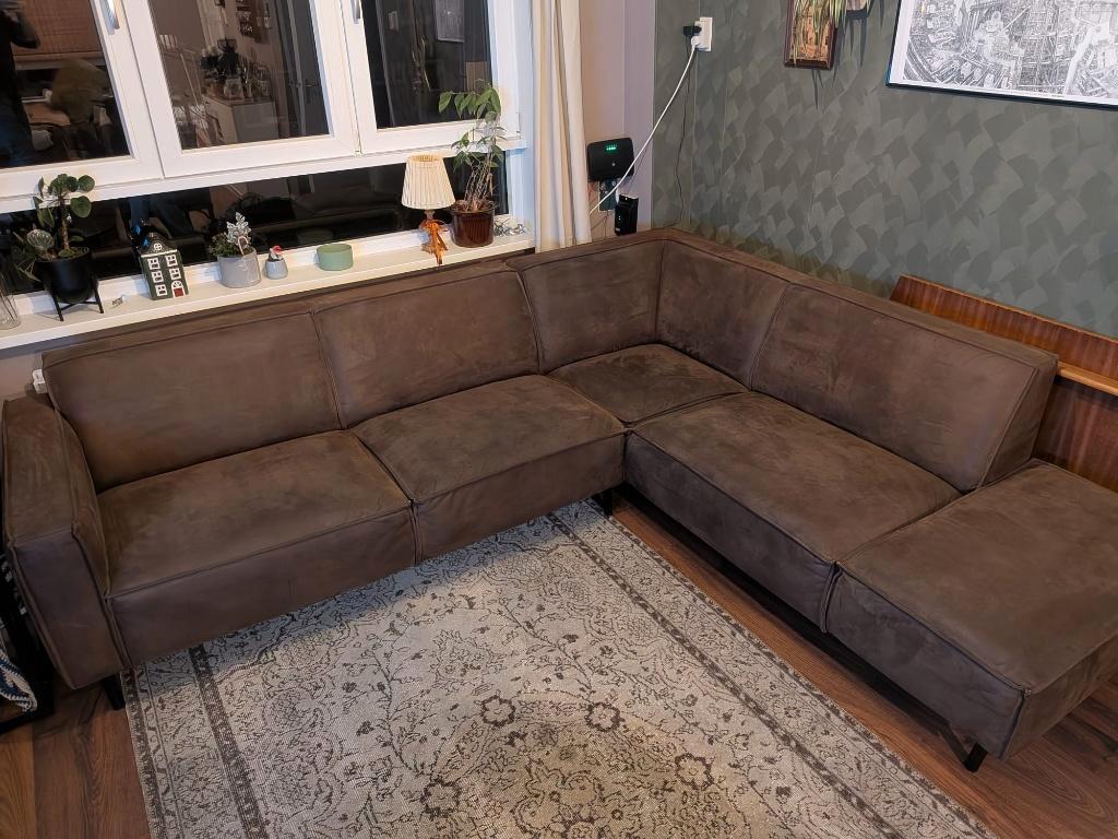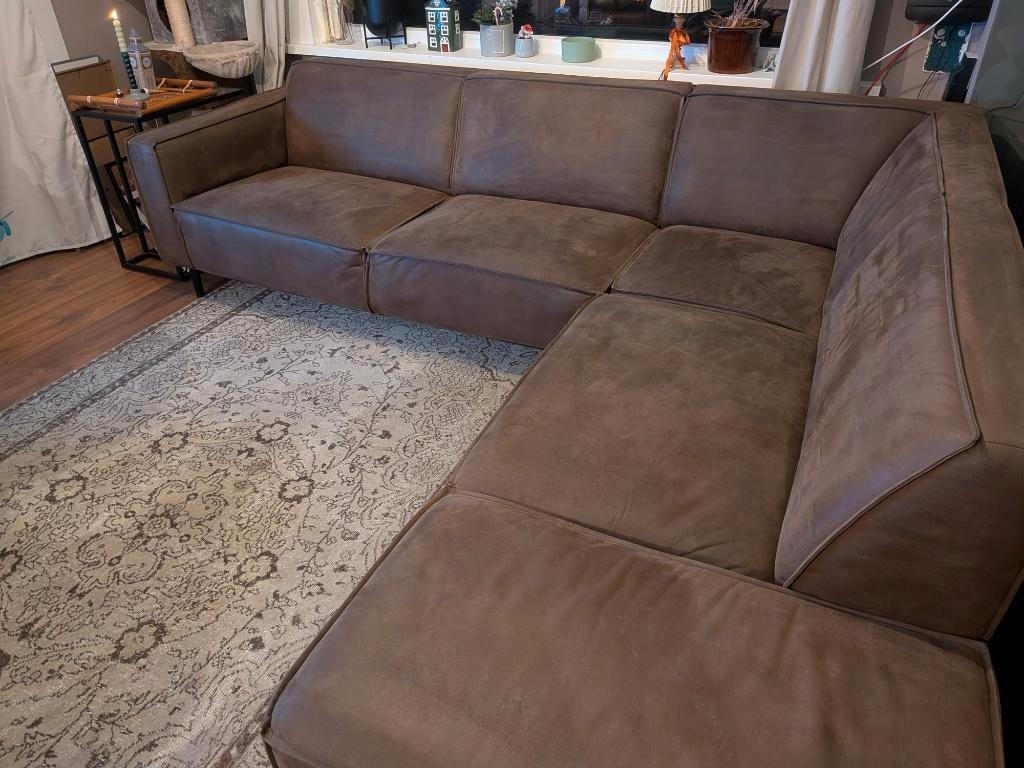 cognac bruine umix hoekbank met gebruikssporen