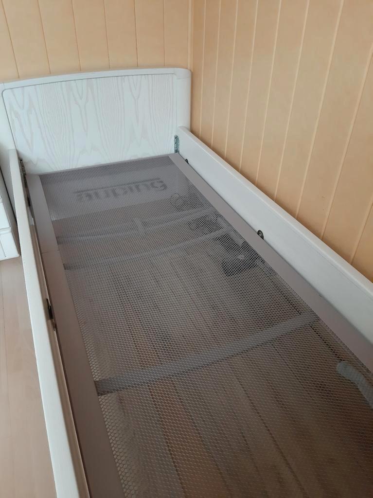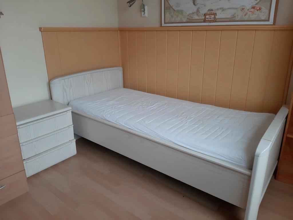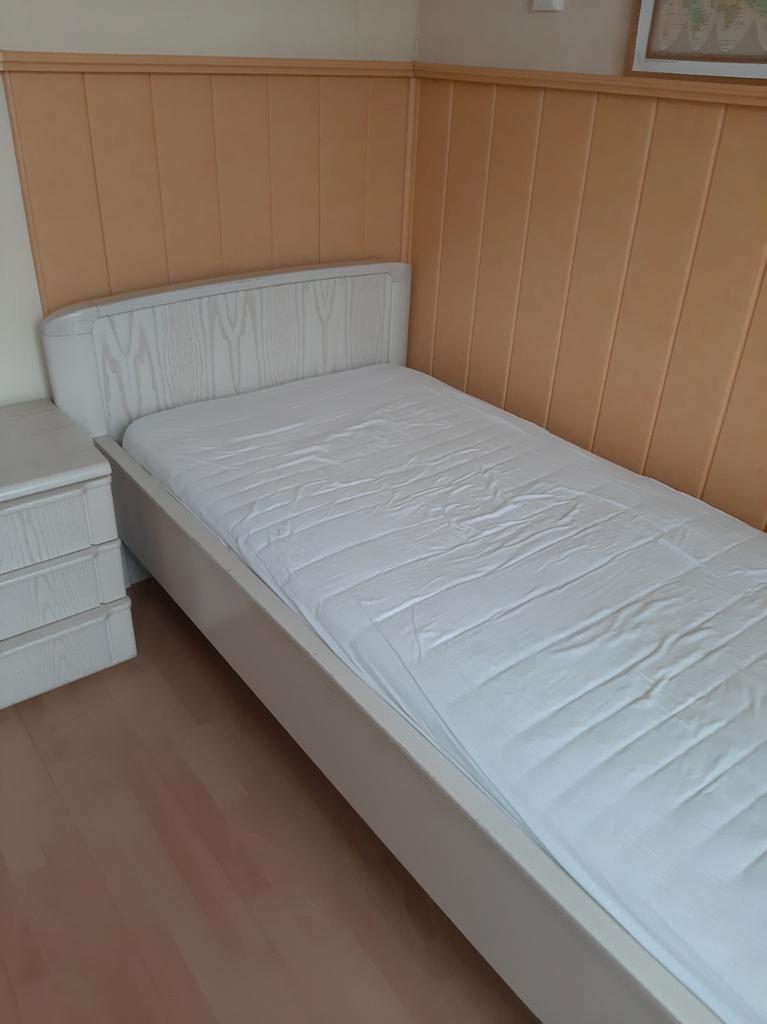 1 persoonsbed bodem elektisch verstelbaar, maar werkt op dit moment niet nachtkastjes zijn 88 cm hoog en 55 cm hoog breedte en diepte zijn voor beide nachtkastjes 58 x 42''5 cm