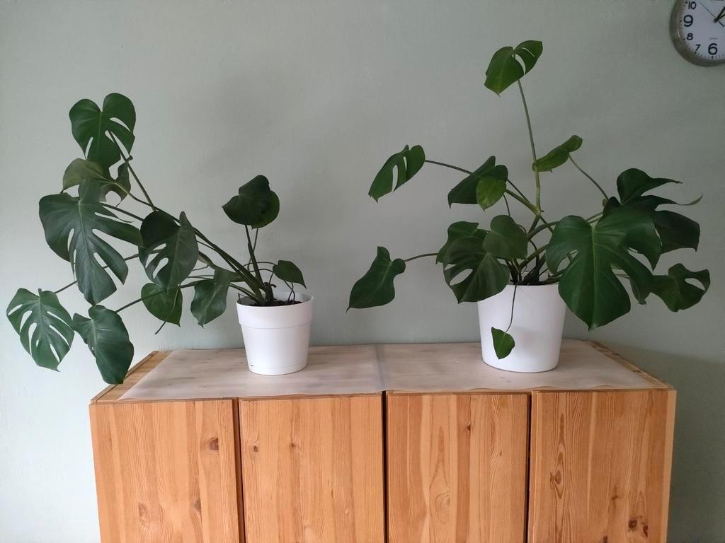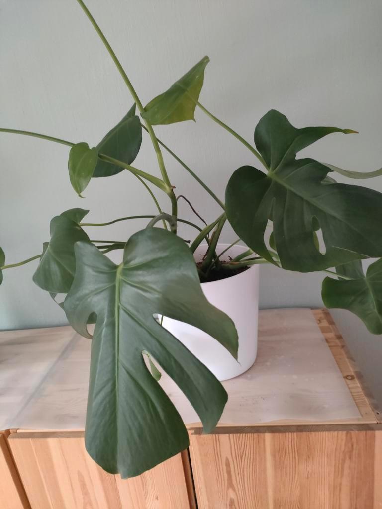 Twee prachtige en gezonde monsteraplanten (gatenplant) gratis op te halen. Ze zijn goed verzorgd en groeien goed. Perfect voor het toevoegen van een groene touch aan je interieur. De planten worden ve