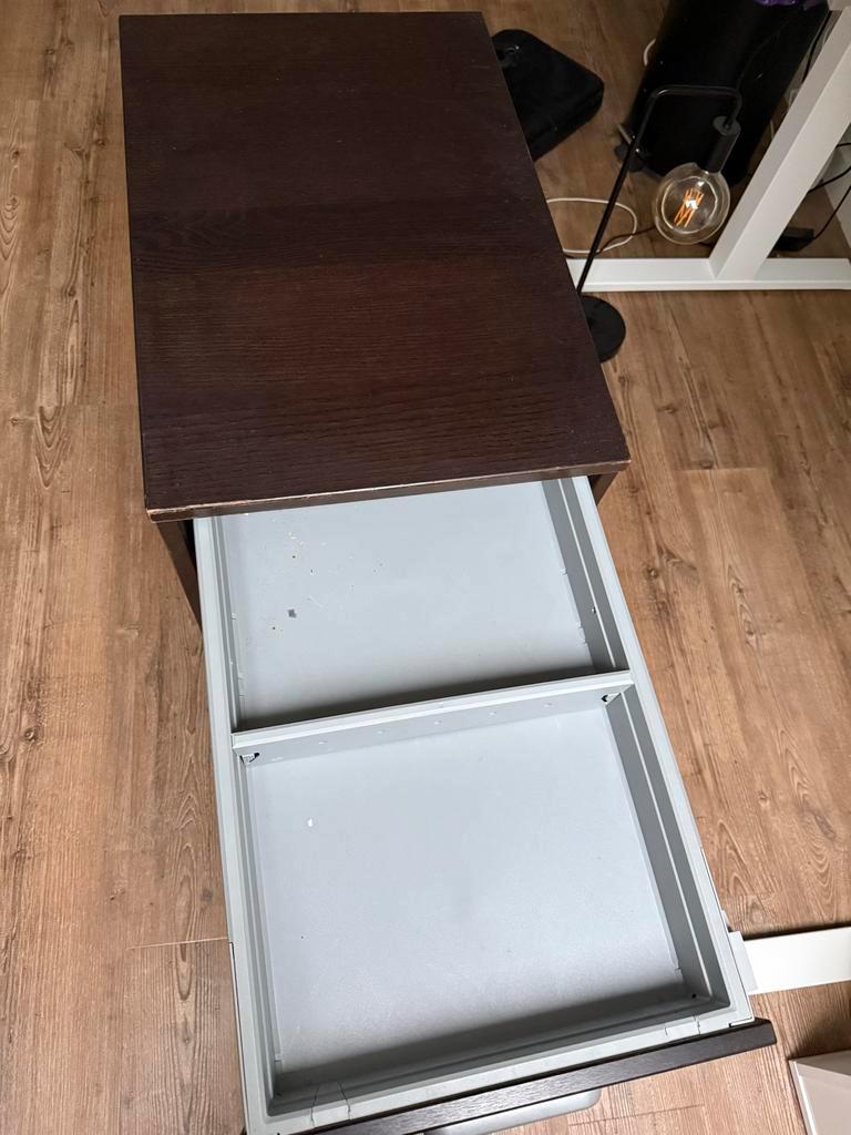 Compacte bureaukast met lades voor opbergen. Ideaal voor kantoor of thuiswerkplek.