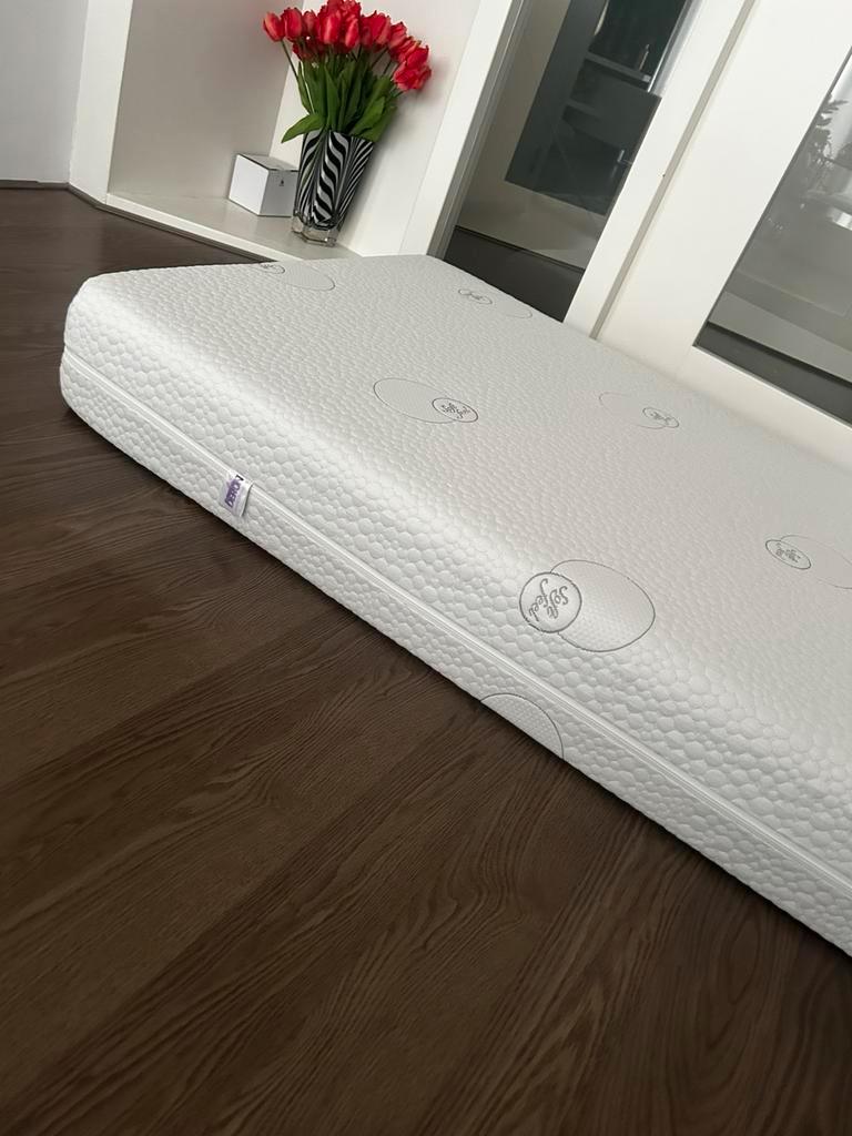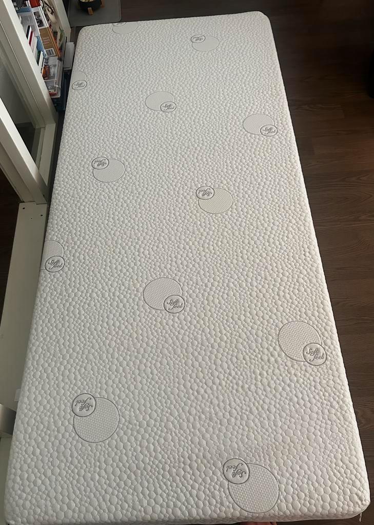 Zo goed als nieuw traagschuim-matras. Dit matras staat bekend om de drukverlagende en comfortabele eigenschappen. De afmeting is 90x200cm, en wordt vaak aanbevolen voor mensen met spier- en gewrichtsk