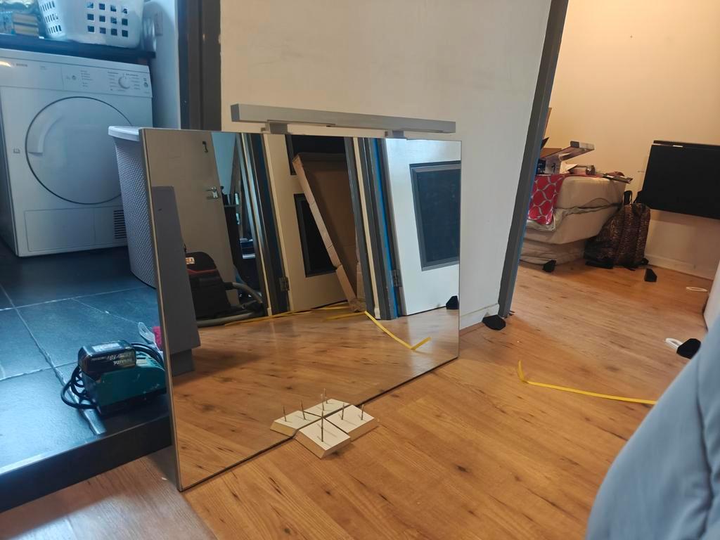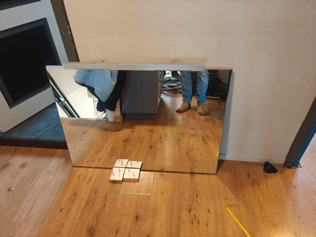 Mooie spiegel van 100 cm breed en 60 cm hoog. Ideaal voor de badkamerl. De spiegel is in goede staat en klaar om opgehangen te worden. Geeft een ruimtelijk effect en is een stijlvolle toevoeging aan e