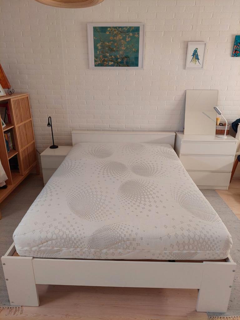 Bed en matras gratis op te halen! Het bed is voor een matras van 140cm. Komt van ikea. Is +- 10 jaar oud en heeft enkele beschadigingen (zie foto). Het matras is 8 jaar oud en komt van leen bakker. Vo