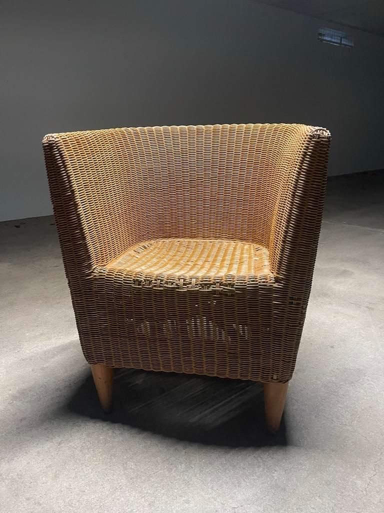 Rieten stoel. Zit heel goed. Lichte beschadiging op zitvlak.