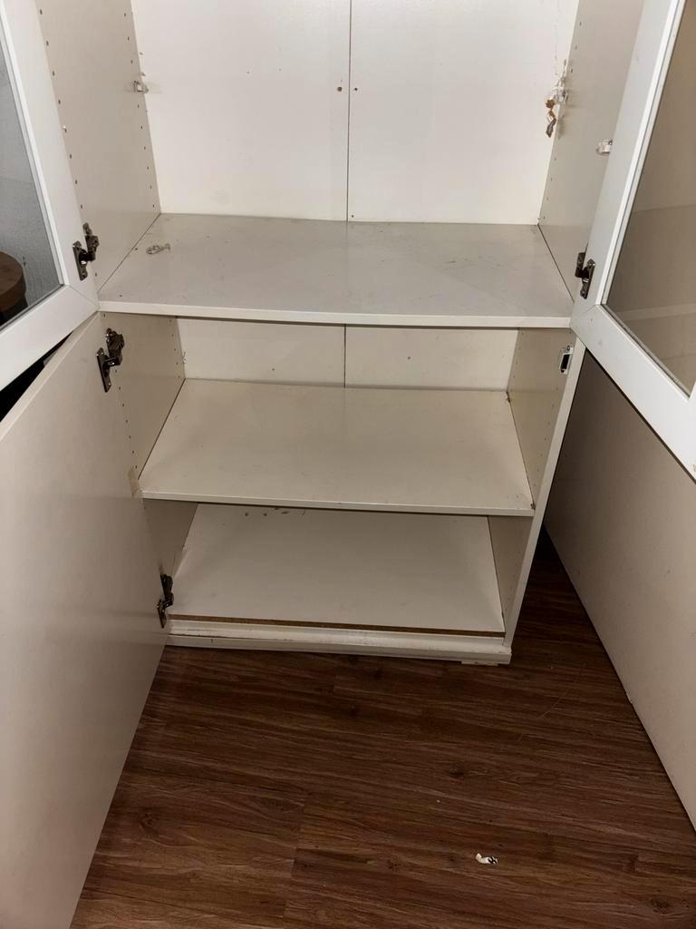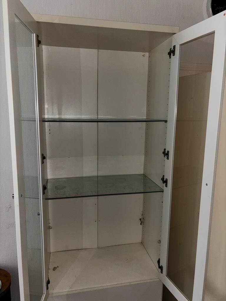 Mooie (gebruikte) vitrinekast, gebruikt voor glazen en opbergen boeken (onderin) let op: hij kan niet uit elkaar! Moet dus in 1 geheel meegenomen worden.