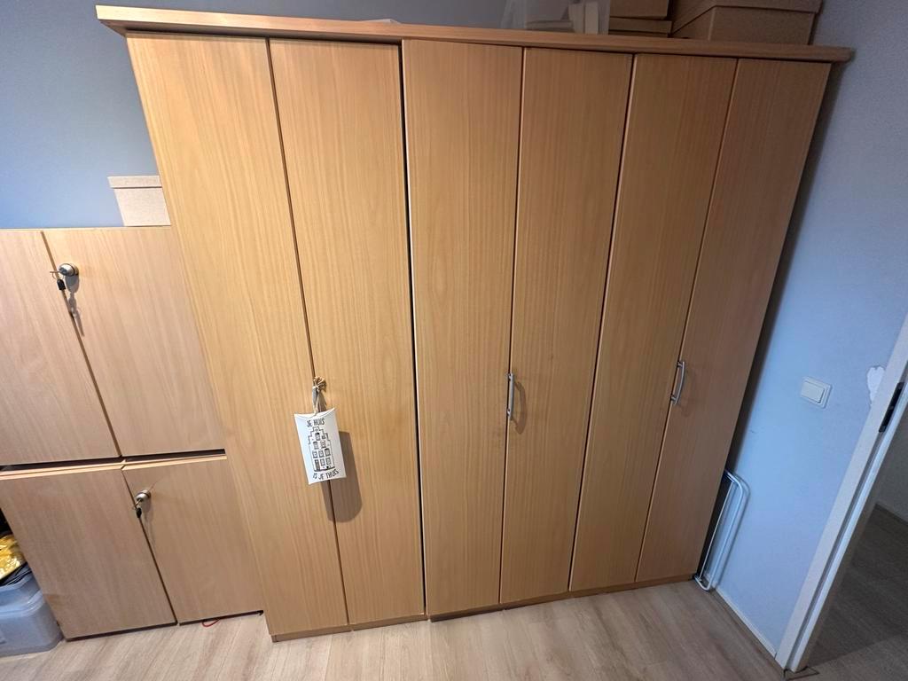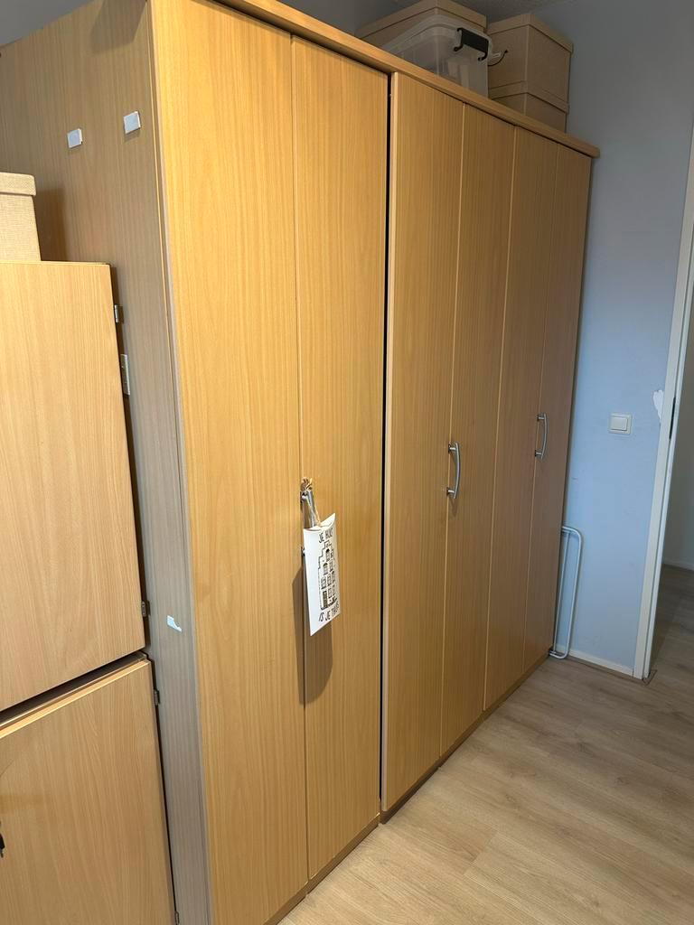 Kledingkast, hxbxd 200:180:60. 2 Losse kastjes hxbxd 75:80:45. Ladenblok hxbxd 56:43:60. De meubelen zijn overbodig geworden wegens de aanschaf van nieuwe kasten. Ideaal voor extra opbergruimte in een