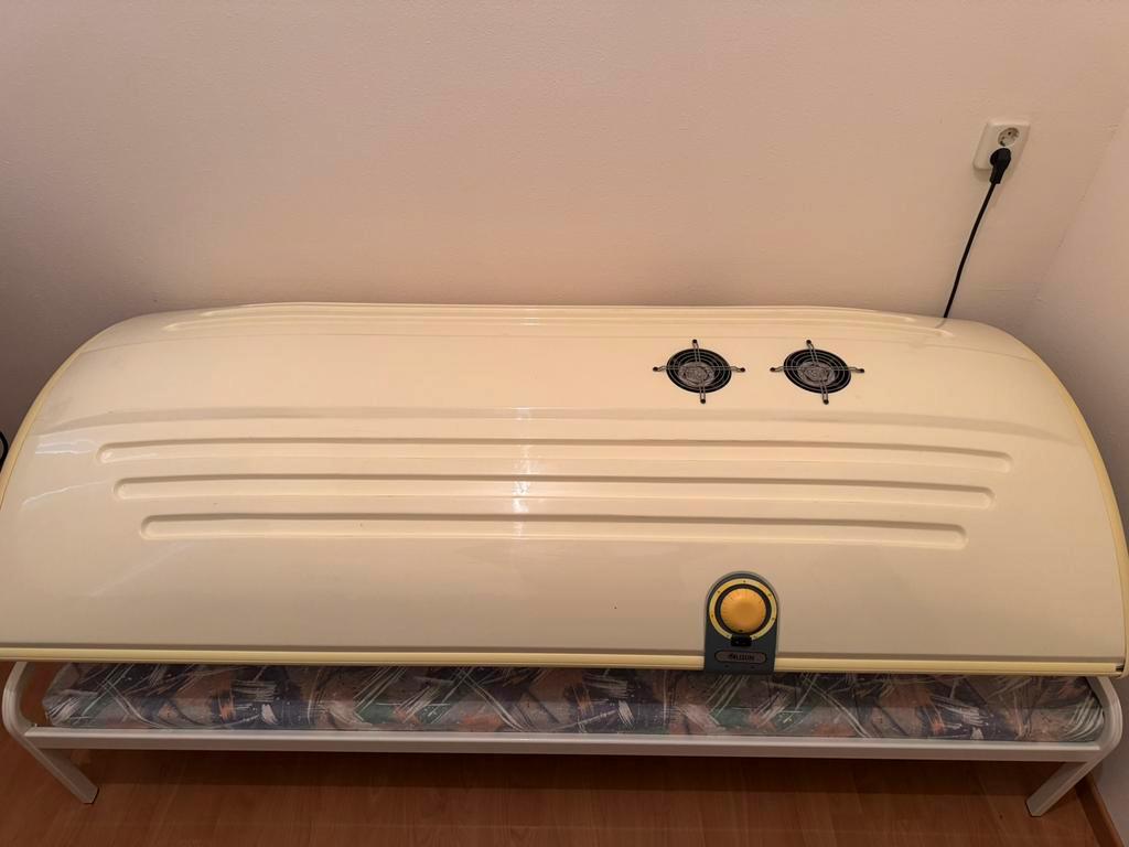 Deze alisun zonnehemel is in goede staat. Doet nog uitstekend zijn werk. Inclusief bedje!