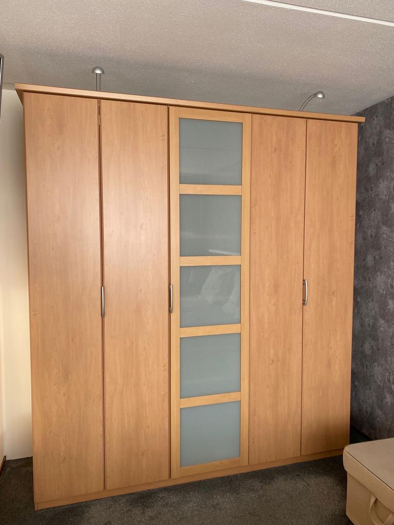 Grote kast van ongeveer 2 meter breed en 50 cm diep. Ideaal voor het opbergen van kleding, boeken of andere spullen. De kast heeft meerdere deuren en planken. Zit ook een gedeelte hang bij. Perfect vo