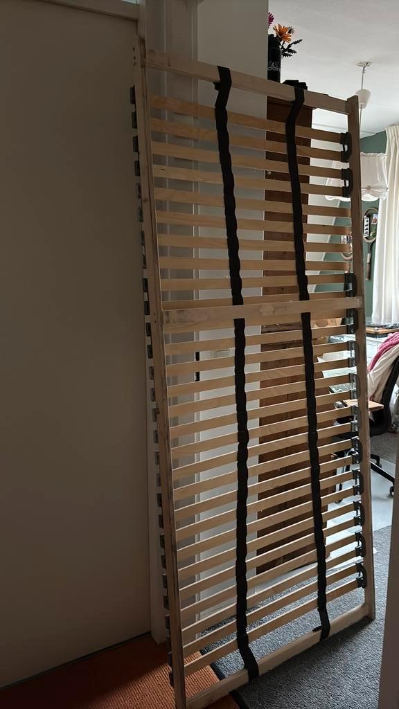 Lattenbodem van ikea geschikt voor een persoons bed. Gratis op te halen (hij is nu uit elkaar ) twee lattenbodem houders zijn stuk, ik gok dat dit te maken is met nietjes, zo zit de rest ook vast zie