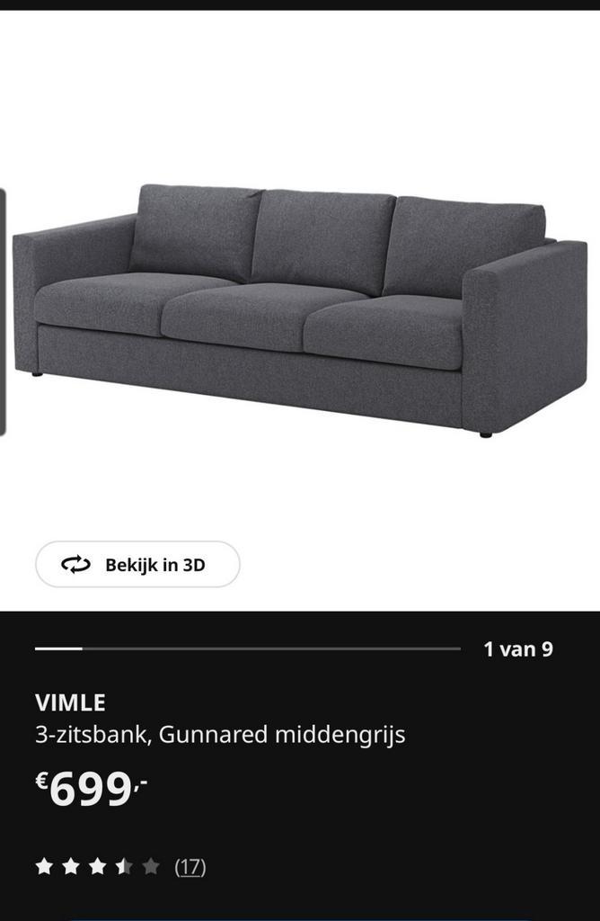 Ikea vimle 3-zits bank. Nog in goede staat. Wil deze graag ruilen tegen 8 flesjes karmeliet. Afmetingen van de bank: zie foto''s.