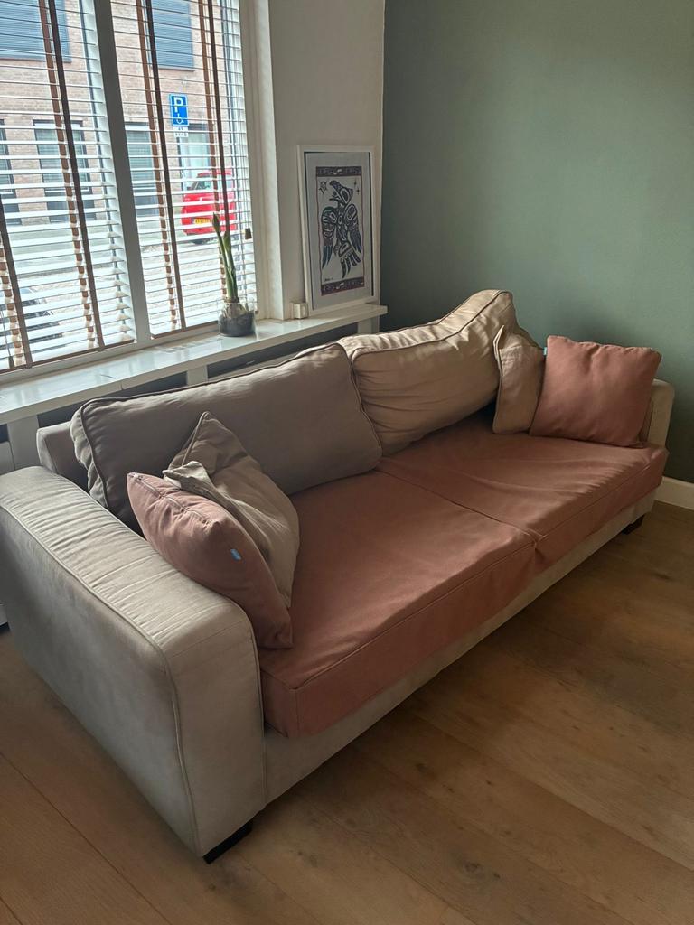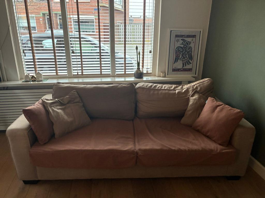 Comfortabele 3-zits bank met afmetingen: breedte 230cm, diepte 100cm, hoogte 74cm. Ideaal voor een gezellige zithoek. De bank is in goede staat en biedt voldoende ruimte voor meerdere personen.