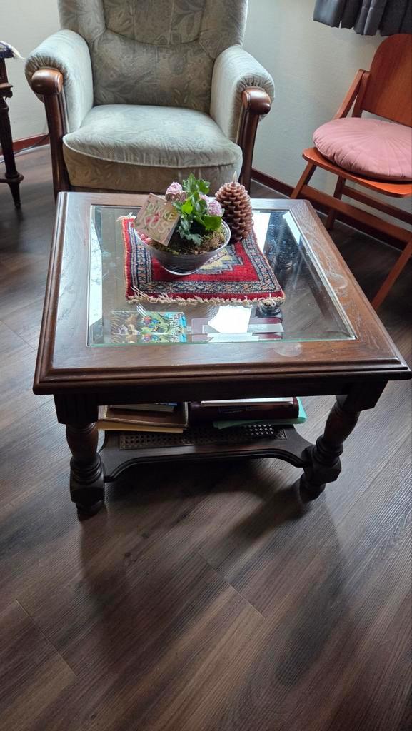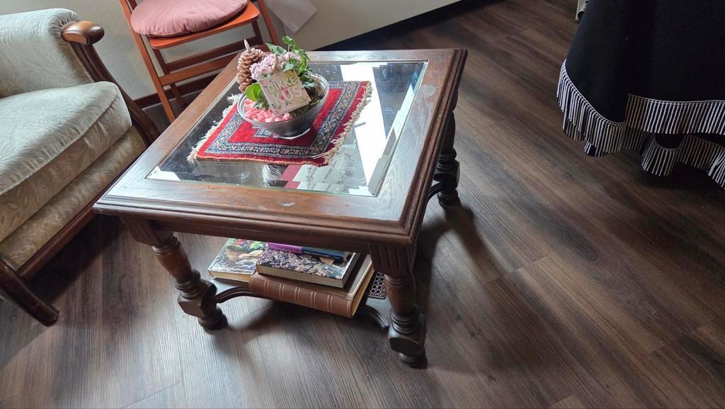 Gratis af te halen: leuk tafeltje met glasplaat.