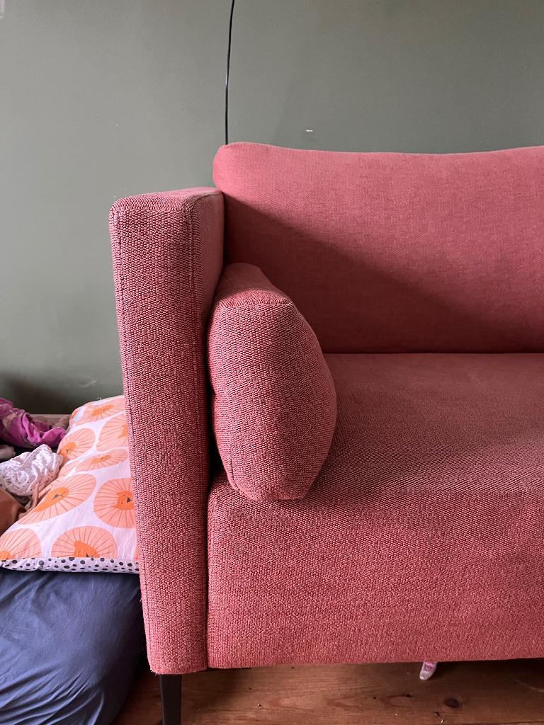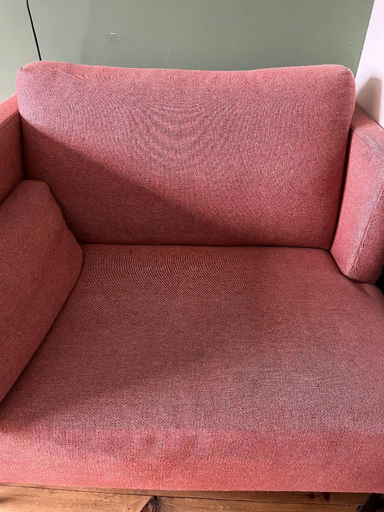Twee roze loveseats van hofstede raanhuis. Geen dieren in huis. Gebruikt maar in heel goede staat. Een is 1.01M breed, de ander 96cm. 93Cm diep en 90cm hoog (inclusief kussen).