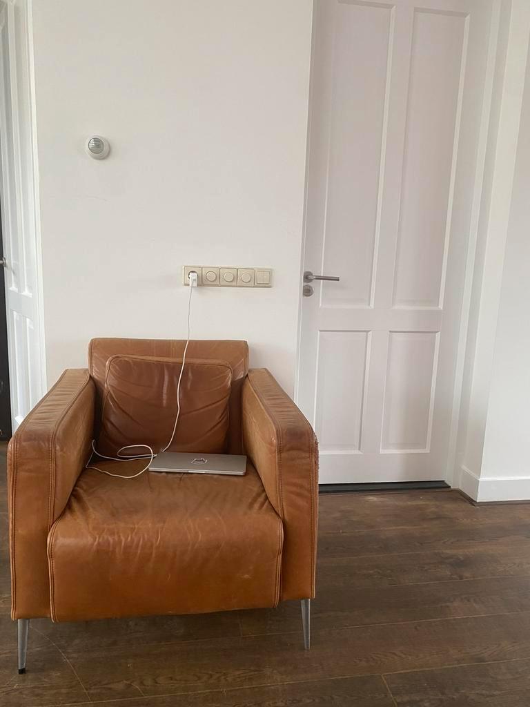 Deze heerlijke leesstoel past niet meer in ons nieuwe huis en mag gratis weg. De poes heeft er ook van genoten zoals je aan een van de armleuningen kunt zien maar dat maakt ‘m wat ons betreft niet min