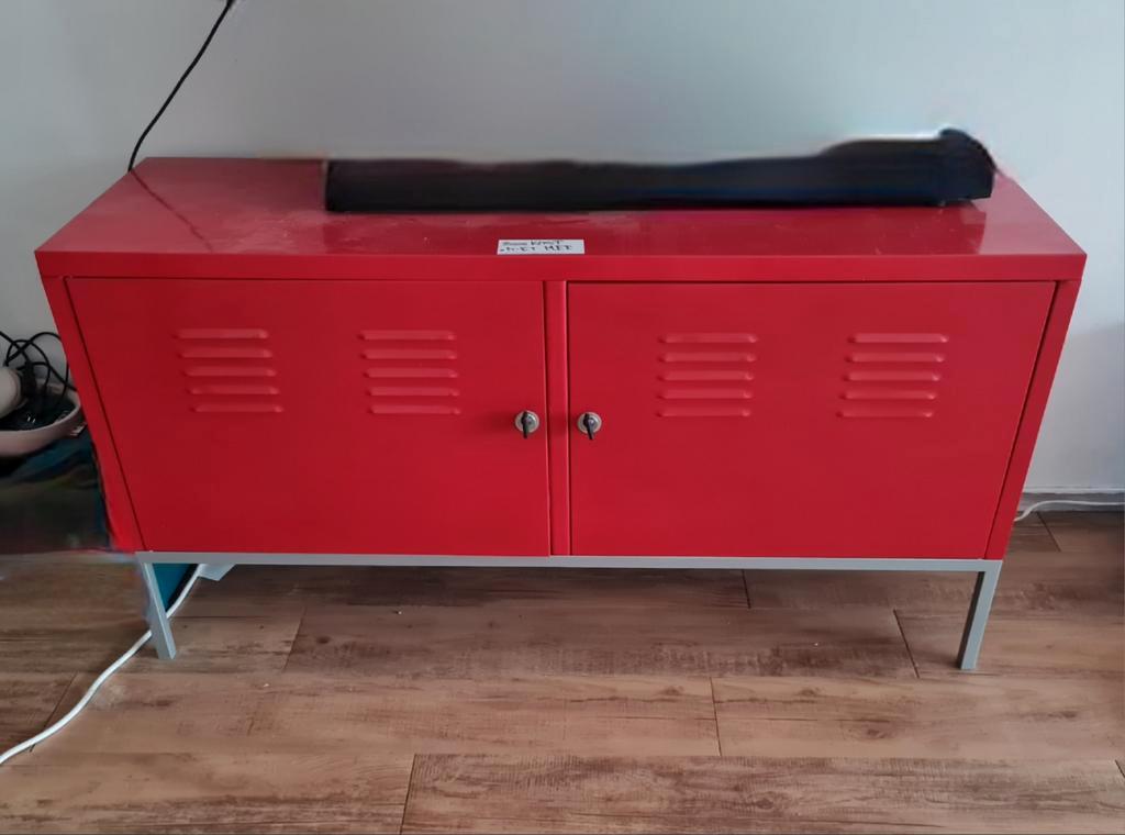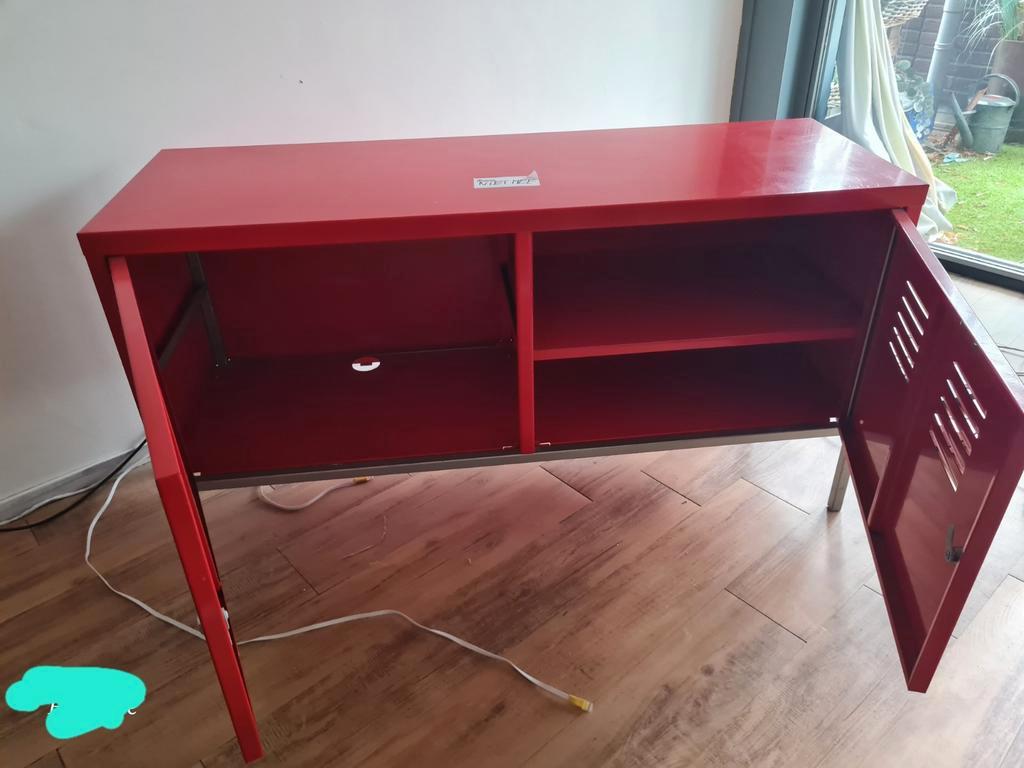 Twee rode metalen kasten beschikbaar ivm verhuizing. Moeten dinsdag 12 februari opgehaald worden. Afmetingen zijn onbekend, zie foto''s voor een indicatie. Ideaal voor opslag in garage, schuur of k