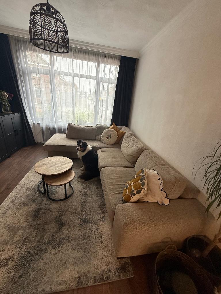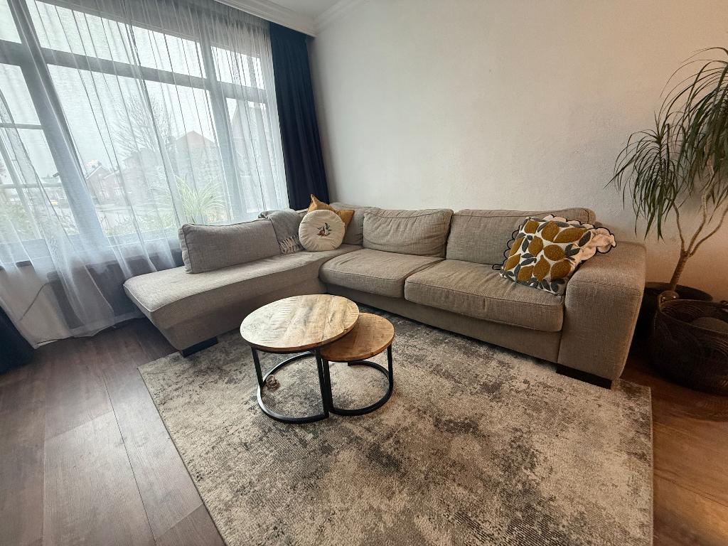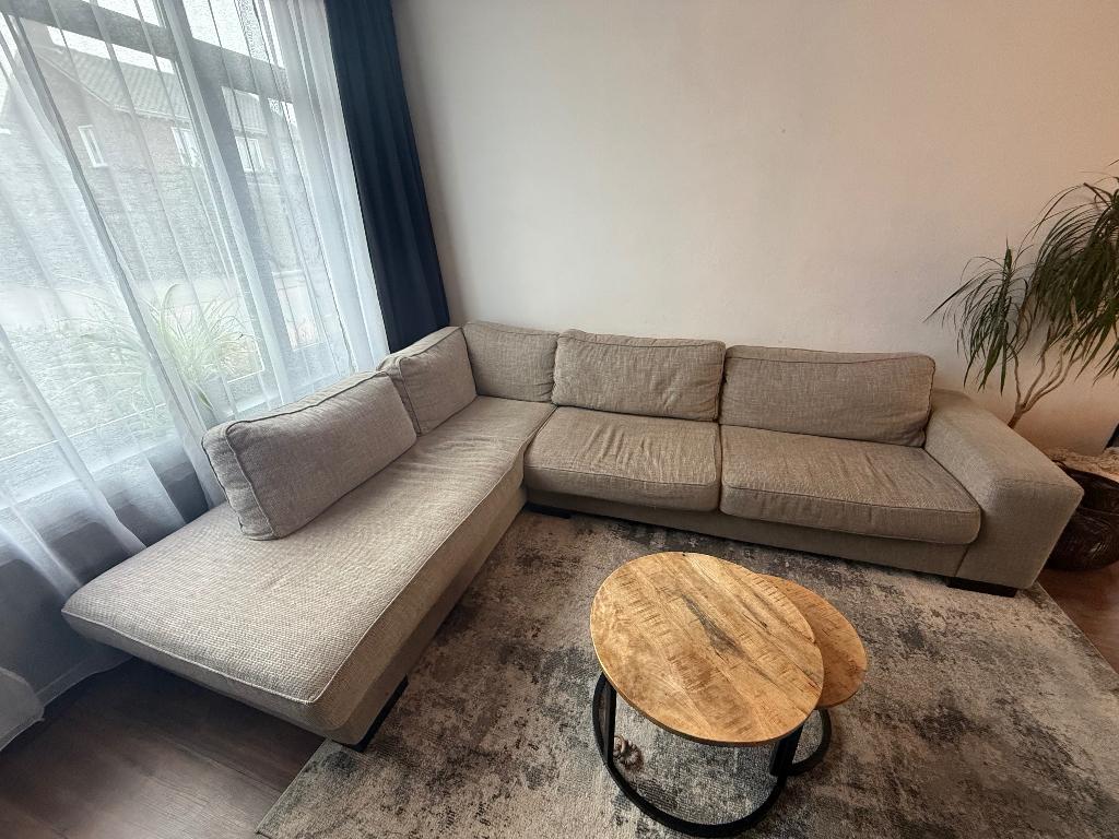 Gratis af te halen ruime hoekbank in grijs/beige (taupe) kleur. De bank is nog stevig en comfortabel, zonder doorzakkingen of constructieve gebreken. De bekleding heeft wel een reinigingsbeurt nodig (