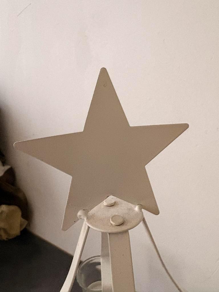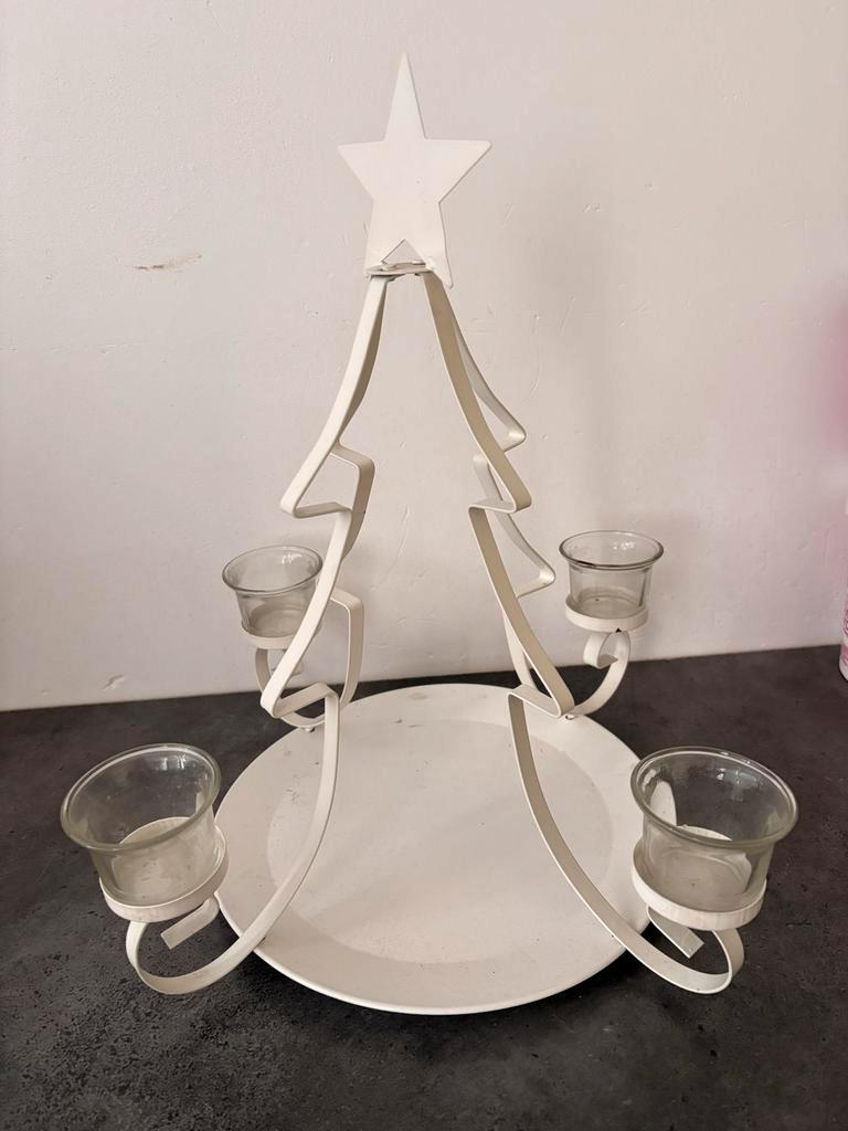 Leuke witte kandelaar in de vorm van een kerstboom. Geschikt voor 4 kaarsen. In goede staat.
