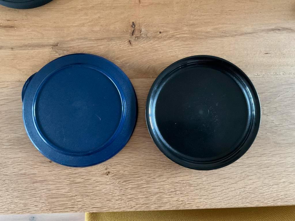 Gratis af te halen 2 verschillende deksels voor tupperware serveerkom. De kom heb ik niet meer, maar wel een afsluitbare deksel ( de blauwe) en een afdekdeksel ( de zwarte). Ik kan ze weggooien, maar