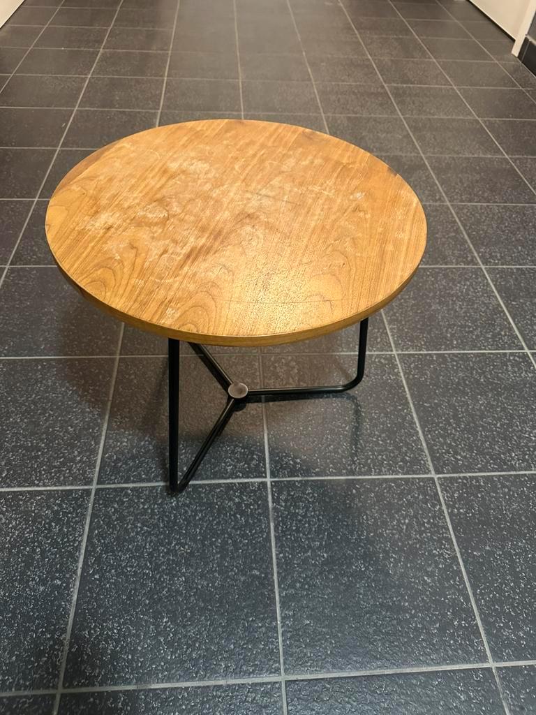 Gratis bijzet tafel. Ophalen in utrecht. Gebruikte staat, tafelblad moet opnieuw geschuurd worden en een dopje onderaan de poten ontbreekt.