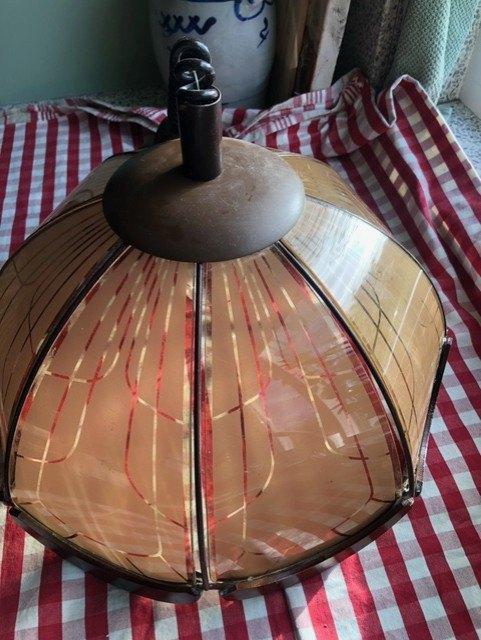 Helemaal gaaf. Afkomstig uit duitsland. Hoogte lamp is 26 cm. Diameter is 40 cm. Glazen kap met een houten rand aan de onderkant. Alleen ophalen!!