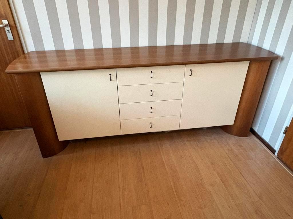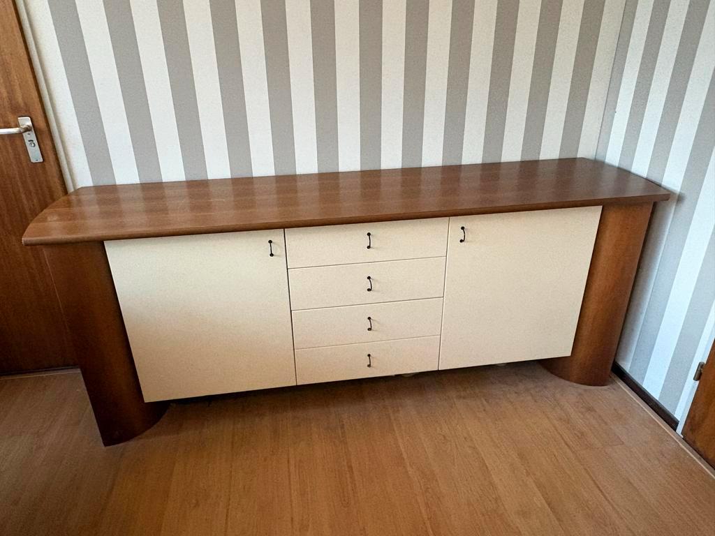 Mooie dressoir/buffetkast met lades en deuren. De kast is gebruikt, maar in goede staat. Ideaal voor extra opbergruimte in de woonkamer of eetkamer. De bovenkant heeft een paar krasjes maar dat is het