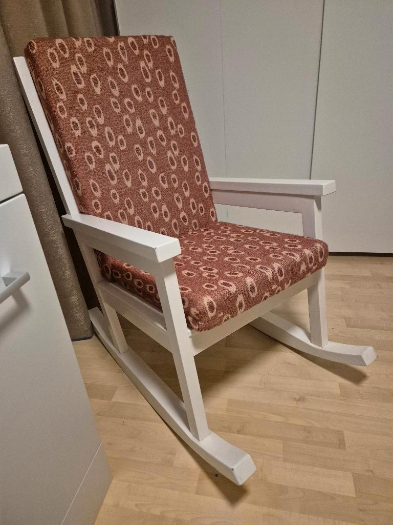 Schommelstoel, gebruikt maar nog erg netjes. Gratis op te halen om ruimte te maken voor een echte grote meiden kamer.