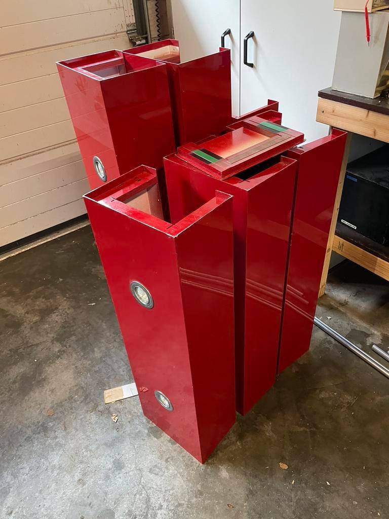 Rode koof boven bv een toonbank of bar rood hoogte 20 cm breedte 30 cm in totaal ca. 6 Meter koof kan eventueel ook om hoek