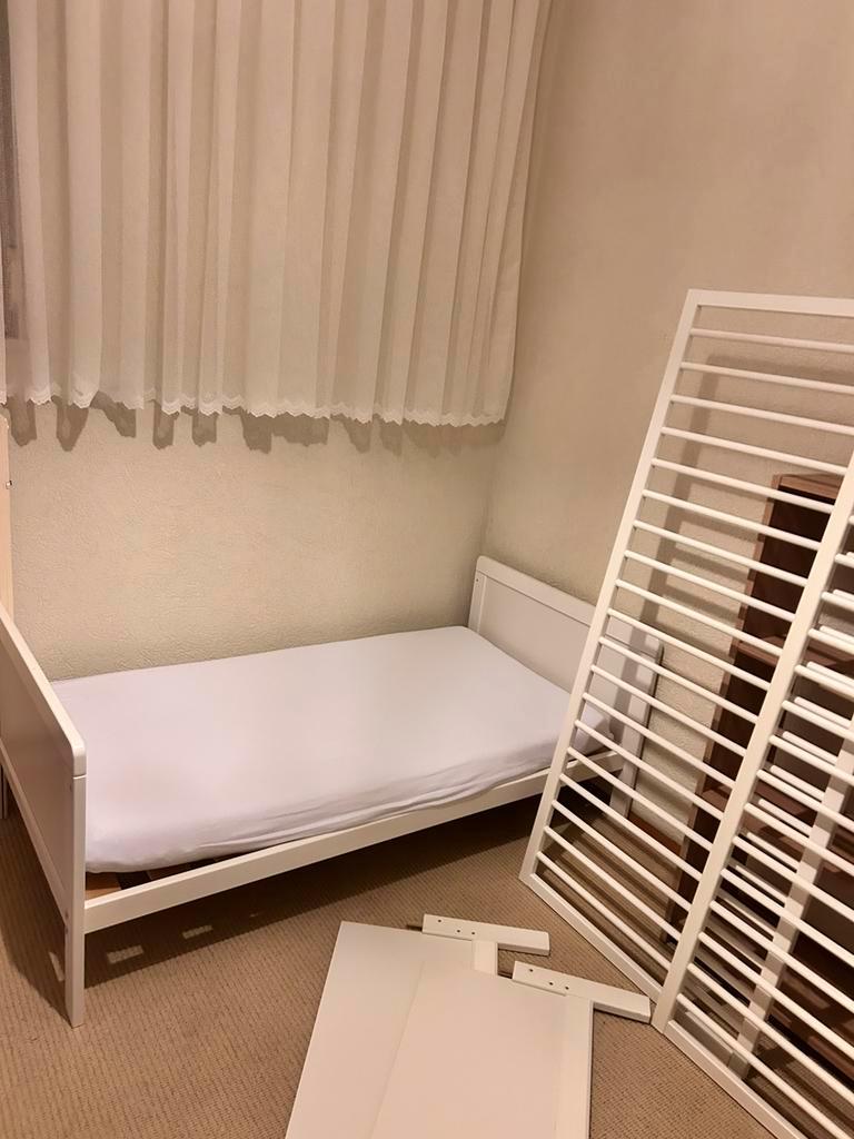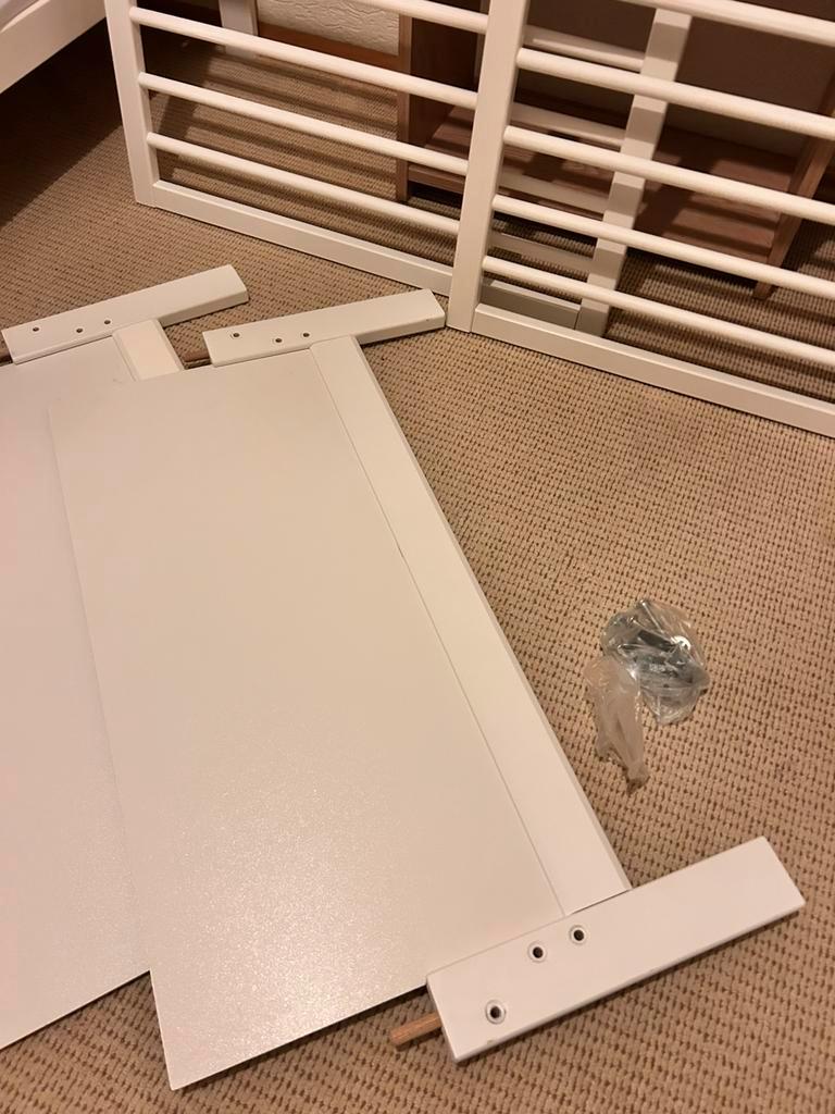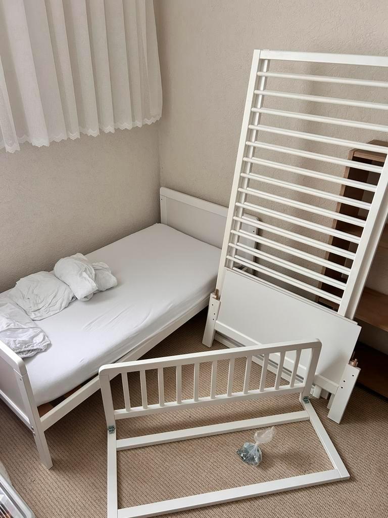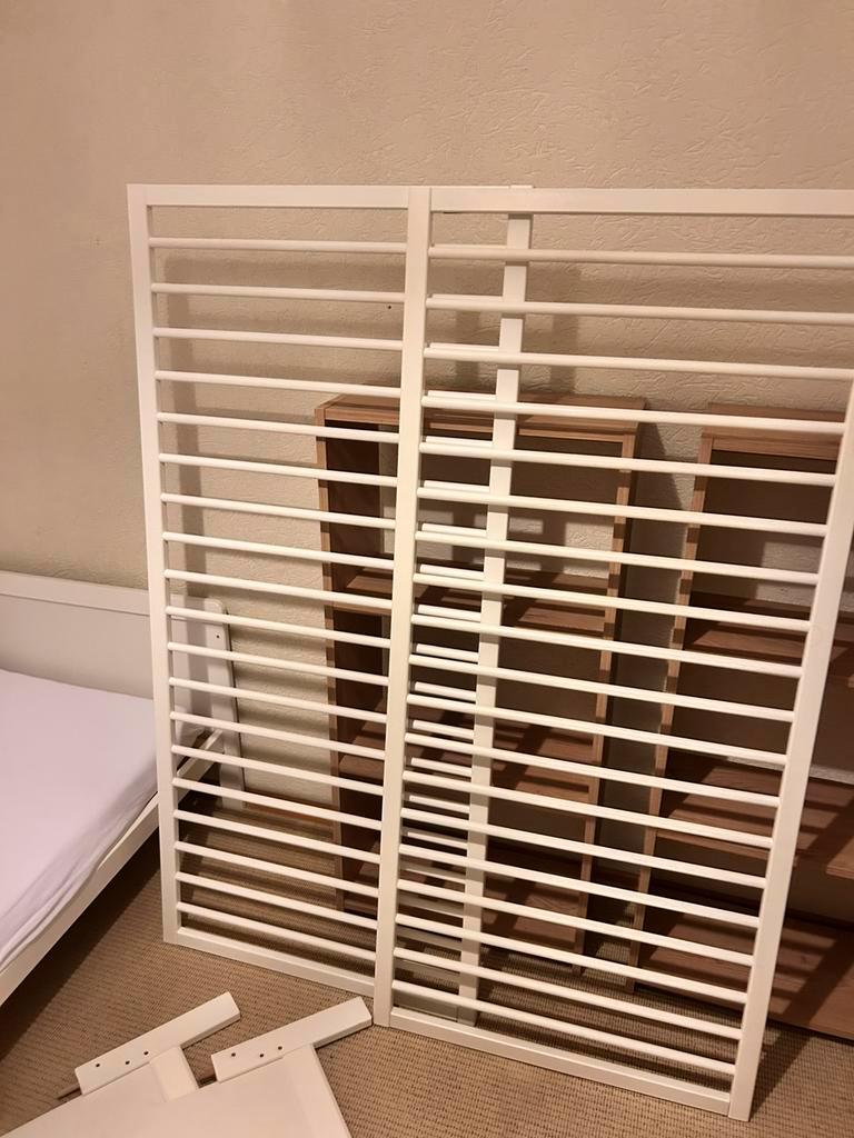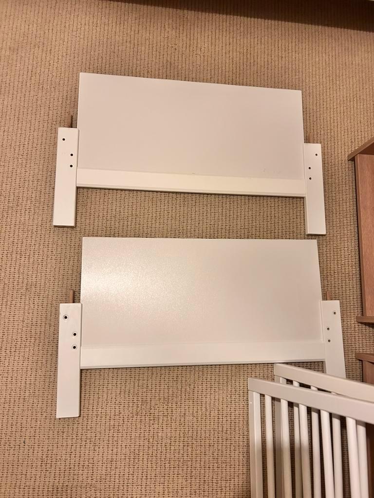 2x vakkenkast zo goed als nieuw. H110xb50xd25 ledikant meegroeibed 70x140 inclusief matras + 5 overtrek+ bedrand , waarvan een waterbestendig overtrek is