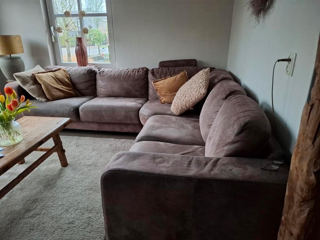Comfortabele hoekbank met afmetingen 270x240 cm. Ideaal voor een ruime woonkamer. De bank is verkleurd maar verder nog in goede staat en biedt veel zitruimte. Perfect om heerlijk op te relaxen! Gratis