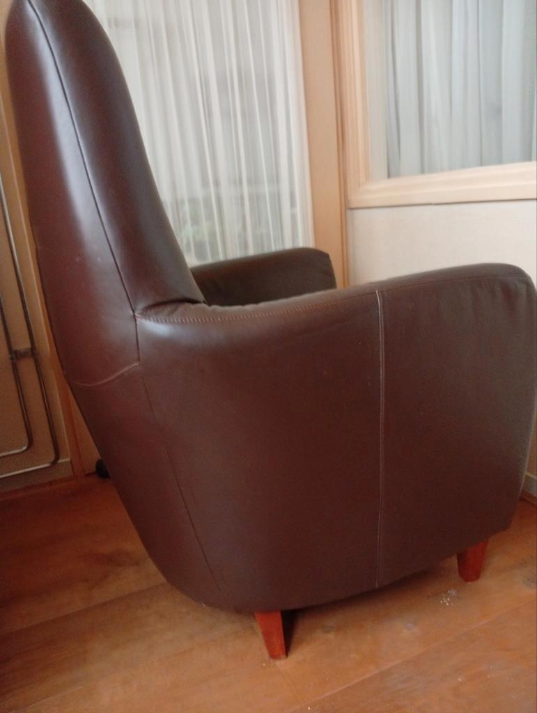 Bruine lederen stoel 2stuks let op!! Hebben in een rookruimte gestaan!!