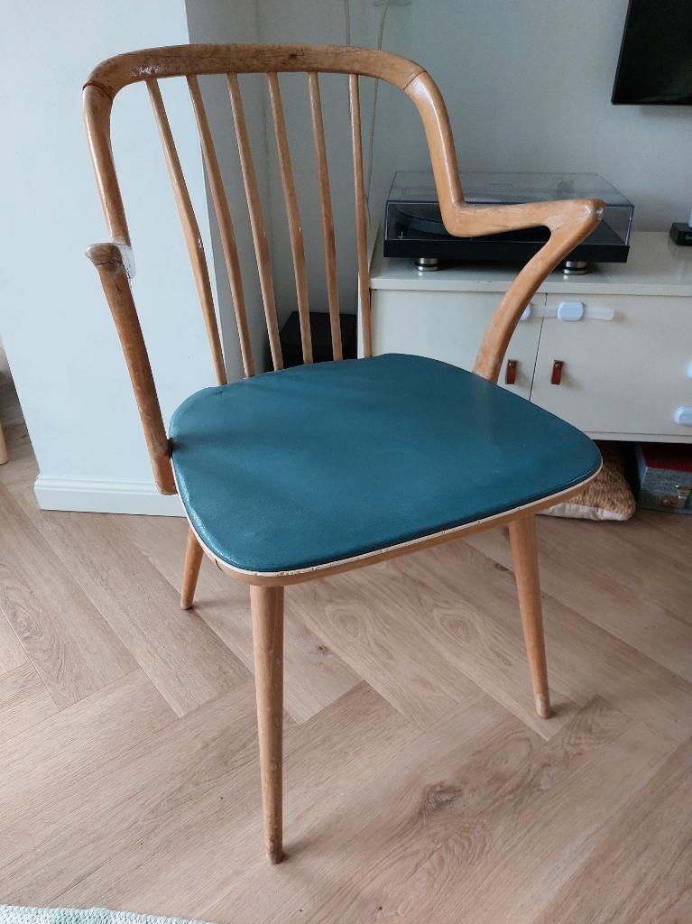 Wie kan ik blij maken met deze vintage stoel? Ik vermoed deens design jaren 40-50. Hij kan wel wat liefde een dacht gebruiken (restauratie) maar misschien is er een liefhebber die hier weer iets moois