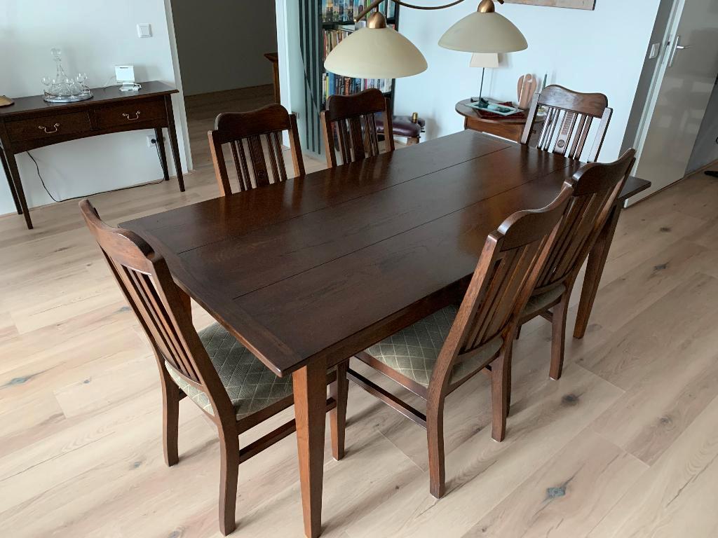 Tafel 95 x 1.80 Gestoffeerde stoelen uit zeer goede staat