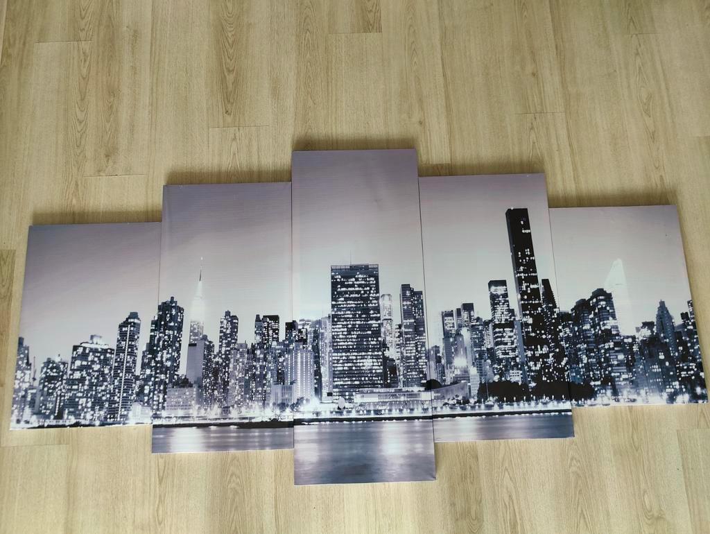 Diverse wanddecoraties beschikbaar. Bekijk de foto''s voor details. Ideaal om je interieur op te fleuren. In goede staat. Bestaat uit 5 afzonderlijke houten panelen.