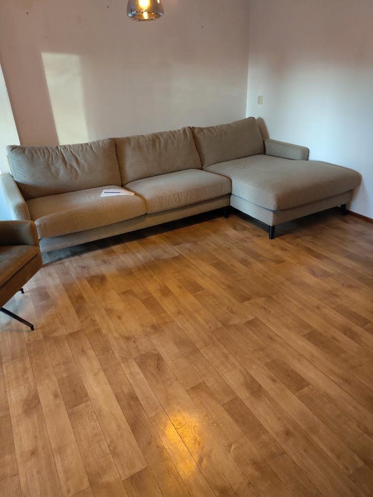 Ziet er helemaal prima en fris uit. In de bekleding verstopt onder de kussens (wat je dus nooit ziet) zit een beschadiging. Deze is gerepareerd.