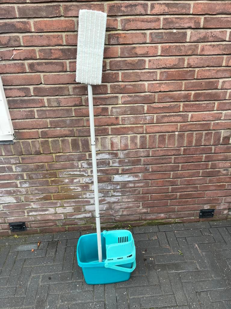Complete dweilset bestaande uit een dweil met steel en een emmer met uitwringsysteem. Ideaal voor het snel en efficiënt schoonmaken van vloeren. De dweil is eenvoudig uit te wringen in de emmer, waard