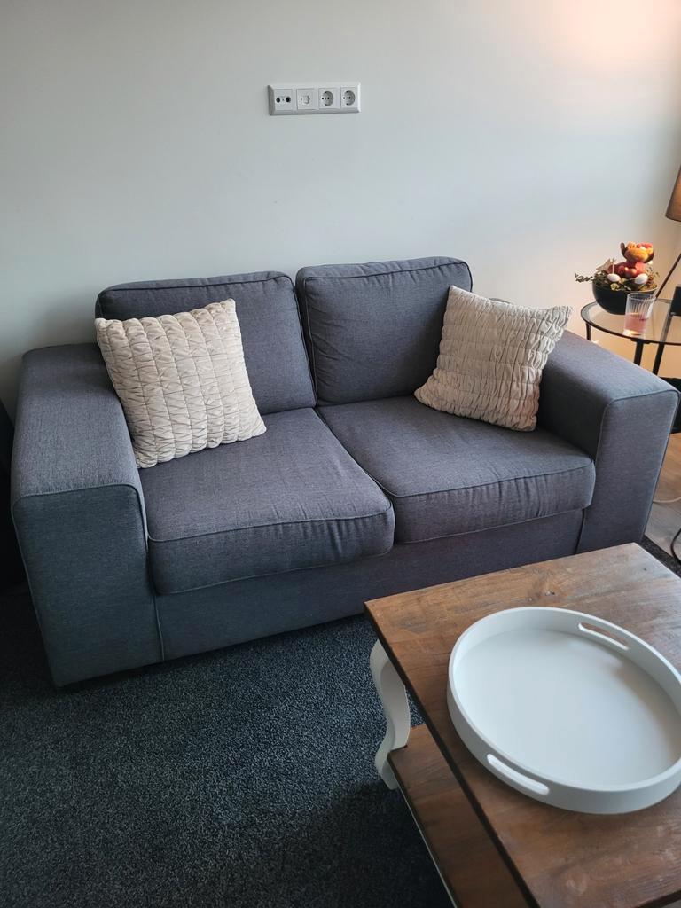 Vanwege verandering van mijn interieur is deze antraciet, grijze 2 zitsbank gratis af te halen. Gebruikt maar in goede staat. De zit en rugkussens kunnen omgedraaid worden en hoezen kunnen gewassen wo