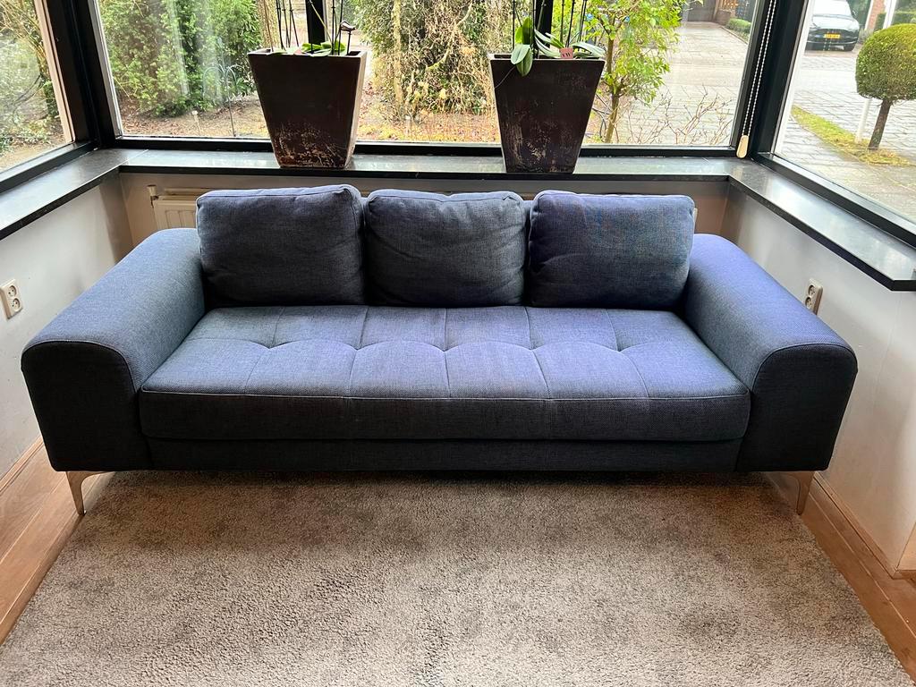 Comfortabele 3-zits bank in een stijlvolle donkerblauw/groene kleur. Deze bank is perfect voor een gezellige woonkamer. De bank is in goede staat en biedt voldoende ruimte voor drie personen. De kleur