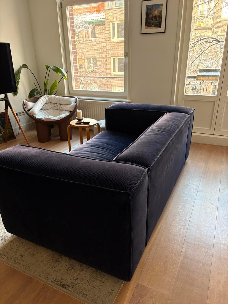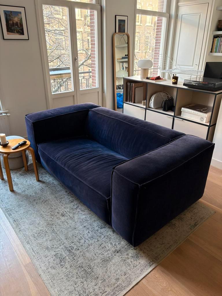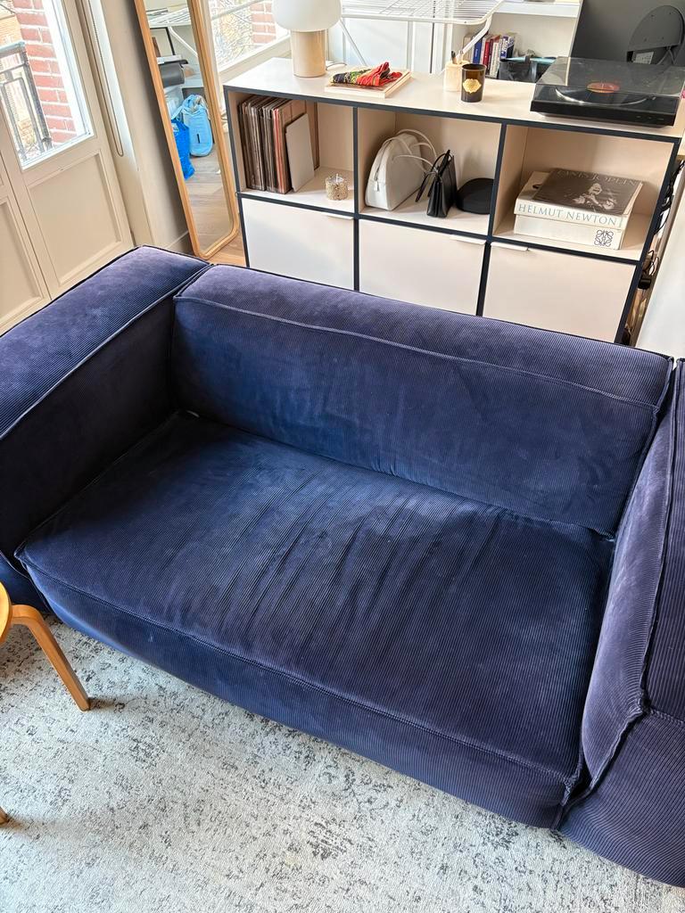 Must go by the 16th stijlvolle studio henk dunbar bank bekleed met marineblauwe corduroy stof. Deze bank is een echte eyecatcher in elke woonkamer. Biedt comfort en een moderne uitstraling. De bank is