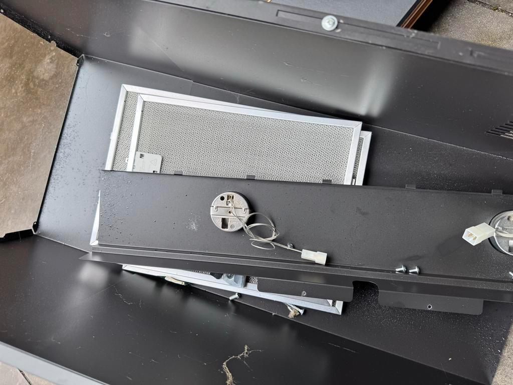 Zwarte smeg afzuigkap. De afzuigkap is gebruikt, maar werkt.