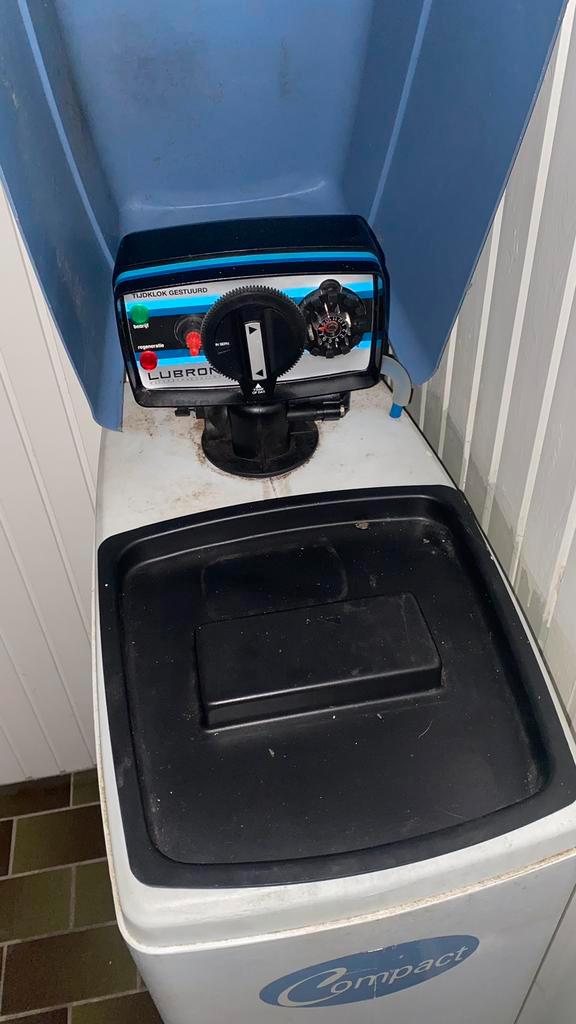 Compacte waterontharder, ideaal voor huishoudelijk gebruik. Werkt met zout. In gebruikte staat. 110X 55x 30cm