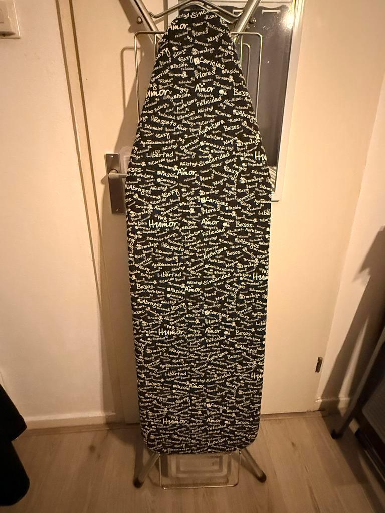 Deze robuuste en brede strijkplank heb ik over. Het brede oppervlak maakt het strijken van grotere stukken textiel, zoals lakens en gordijnen, een stuk eenvoudiger. De strijkplank is stevig gebouwd en