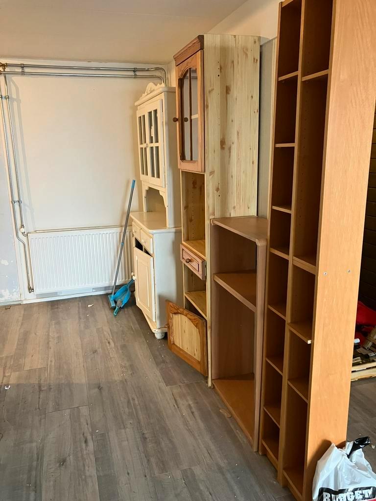 Vanwege verhuizing gratis op te halen: diverse kasten: wandmeubel kledingkast buffetkast boekenkasten cdkasten vanwege intensief gebruik met name geschikt voor in een berging of schuur, niet echt gesc