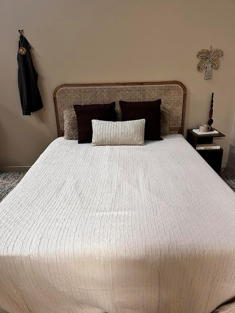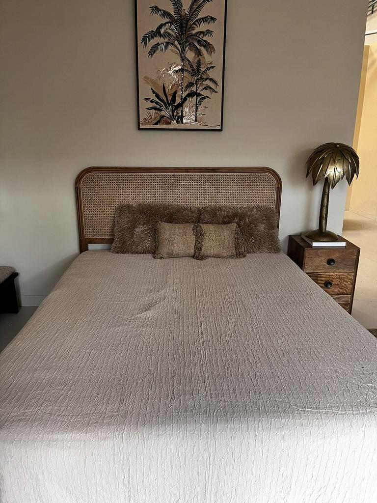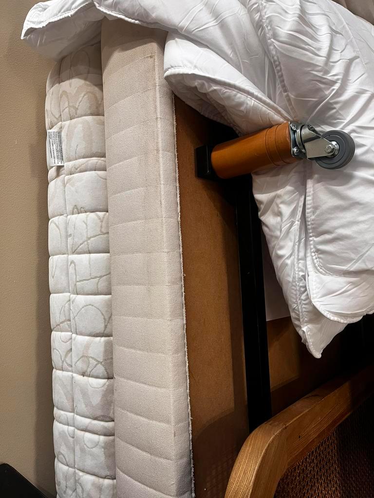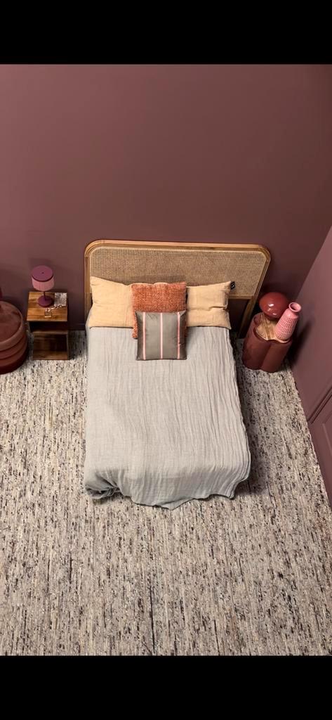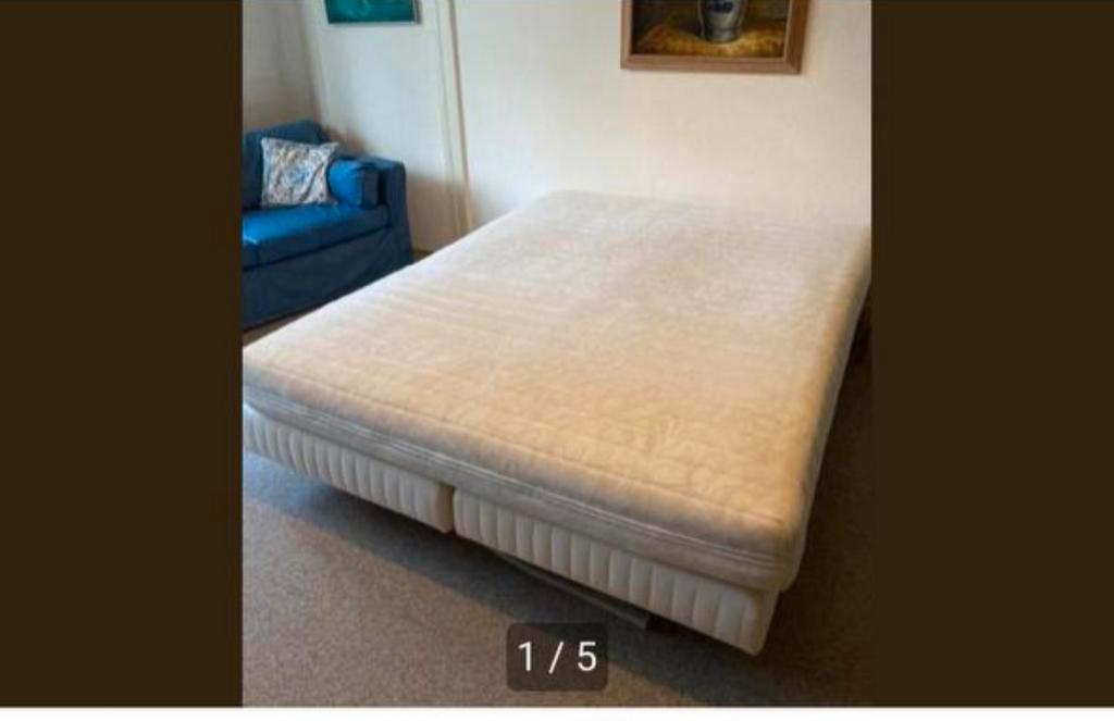 Gratis op te halen bed + matras 160 cm. Het bed is gebruikt voor interieur fotoshoots. Matras zitten paar vlekken in, maar ligt nog steeds heerlijk. Onder de poten hebben we wieltjes gemonteerd zodat